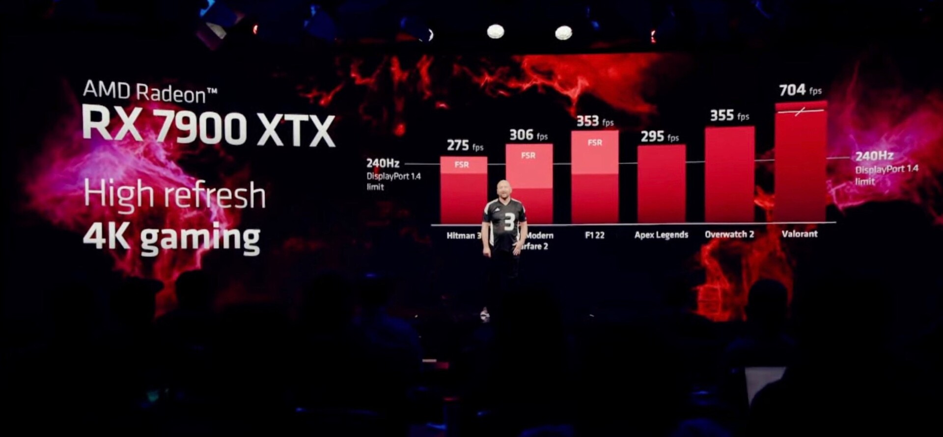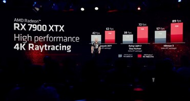 4K-Gaming jenseits der 240 fps soll mit der neuen Flaggschiff-Grafikkarte ebenfalls möglich sein, in einigen Titeln sogar ohne FSR, wie die unten eingebetteten Gaming-Benchmarks zeigen. Im Rahmen des Launch-Events hat AMD bereits eine kurze Vorschau auf FSR 3 gewährt. Die neue Upscaling-Technologie soll die Bildrate im Vergleich zu FSR 2 verdoppeln, der Launch ist für nächstes Jahr geplant.
