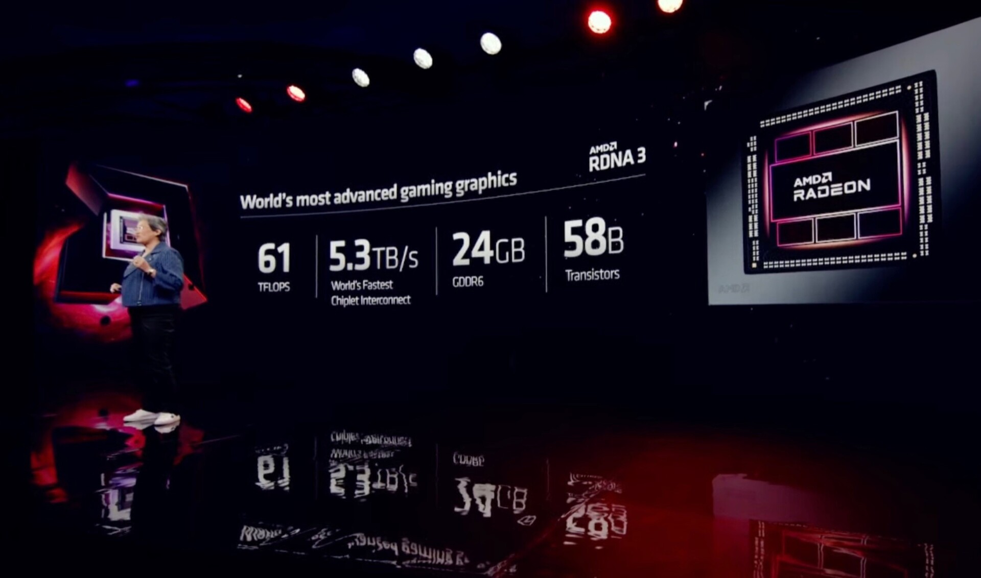 AMD verspricht sich von der brandneuen RDNA 3-Architektur eine 54 Prozent bessere Leistung pro Watt im Vergleich zu RDNA 2. Die KI-Performance soll um das 2,7-fache steigen, die Raytracing-Leistung pro Compute Unit um 50 Prozent. AMDs neue Grafikkarten unterstützen auch DisplayPort 2.1, sodass 8K-Bildschirme mit bis zu 165 Hz betrieben werden können, 4K-Monitore sogar mit 480 Hz, inklusive Unterstützung für AMD FreeSync Premium Pro. Die neue Media Engine kann AV1-Inhalte in 8K-Auflösung bei 60 Bildern pro Sekunde encodieren.