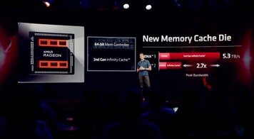 Mit Radeon RX 7000 setzt AMD erstmals bei einer GPU auf ein Chiplet-Design. Die Kombination aus GPU-Dies, die in einem 5 nm-Verfahren gefertigt werden, und 6 nm Cache-Dies, soll für das bestmögliche Preis-Leistungs-Verhältnis sorgen. Die Speicherchips beherbergen bis zu 96 MB Infinity Cache, der in der Radeon RX 7900 XTX eine Bandbreite bis 5,3 TB/s erreicht, womit der Cache 2,7 Mal so schnell arbeitet als noch bei Radeon RX 6000.