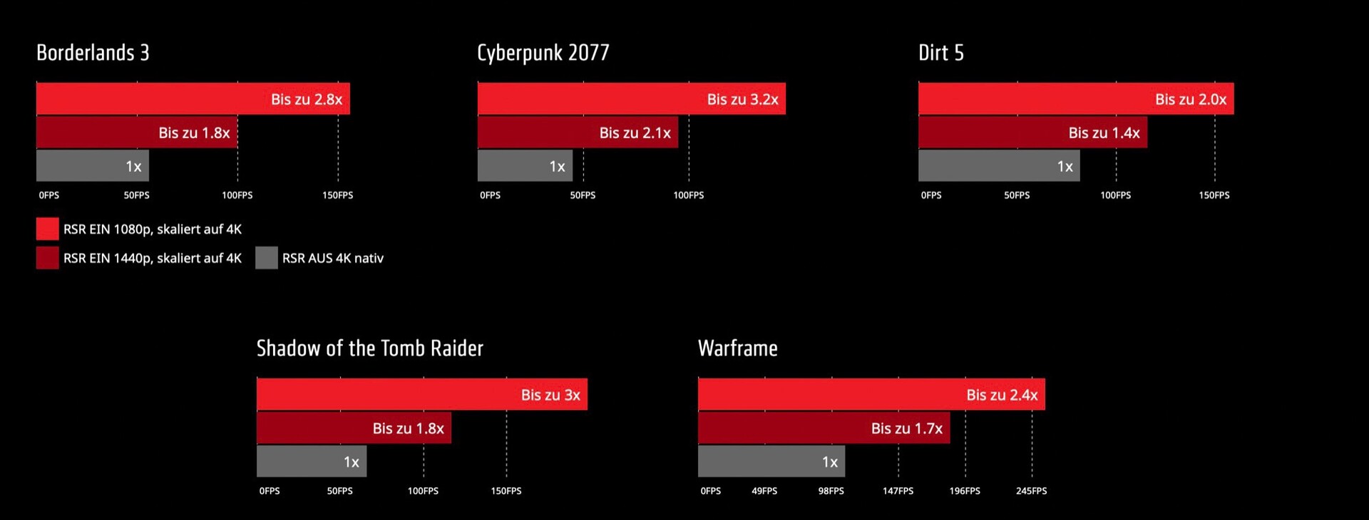 Wurde die Funktion erstmal aktiviert, so müssen Spieler lediglich die Auflösung eines Spiels unter die native Bildschirmauflösung reduzieren, damit Radeon Super Resolution funktioniert. RSR skaliert das Spiel intelligent auf die native Auflösung des Displays, da die GPU zuvor aber weniger Pixel rendern muss, steigt die Bildrate enorm. Wie das unten eingebettete Video von KitGuruTech zeigt, kann die Qualität nicht ganz mit Nvidia Deep Learning Super Sampling (DLSS) mithalten, allerdings bietet RSR eine vergleichbare Bildqualität wie FSR 1.0.
