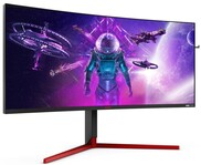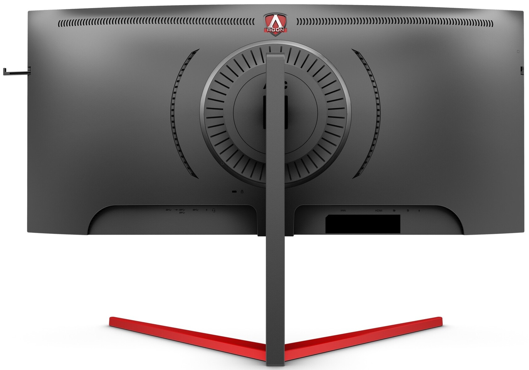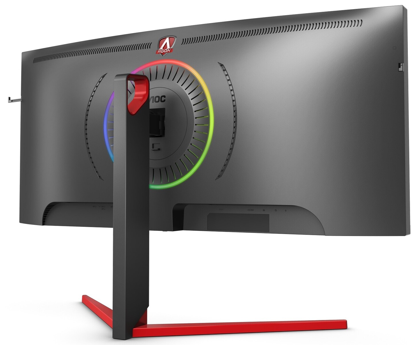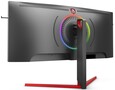 Das Design übernimmt der AG353UC vom Schwestermodell AG273QCG mit einem dreiseitig rahmenlosen Design, rückseitigen RGB-Ringlicht und roten V-förmigen Standfuß. Der Monitor-Stand mit roten und schwarzen Akzenten ist um 120 Millimeter höhenverstellbar. AOC nennt bei den Anschlüssen HDMI 2.0, 2x DisplayPort 1.4, 4x USB 3.1 Gen1, Eingänge für Mic und Audio (Line-in) sowie einen Kopfhörerausgang (3,5 mm).