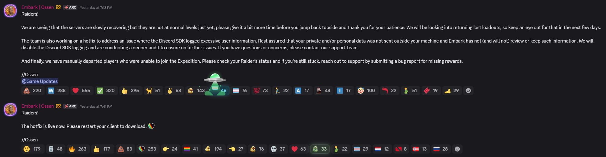 Das Problem stand in direktem Zusammenhang mit dem im Game verwendeten Discord-SDK und betraf nur Spieler, die ihre Discord-Konten mit ARC Raiders verknüpft hatten. Zocker, die ihre Konten nie verbunden hatten, waren nicht betroffen. Kurz nachdem das Problem öffentlich wurde, reagierte Embark Studios und bestätigte, dass das Discord-SDK mehr Nutzerinformationen protokolliert hatte als beabsichtigt.