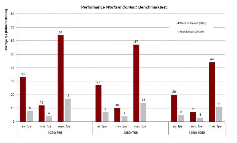 World in Conflict: 1024x768, mittlere Details: 30 fps -> flüssig spielbar
