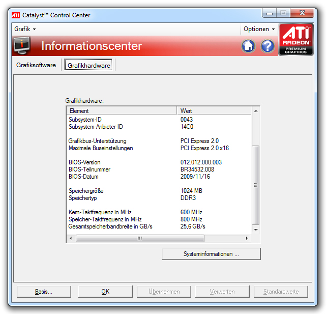 Unklar war anfangs, welcher Videospeichertypus verbaut wurde, da beispielsweise Deviltech von GDDR3 Memory, die ATI Systemsteuerung von DDR3 Modulen und GPU-Z wiederum von GDDR3 VRAM sprach.