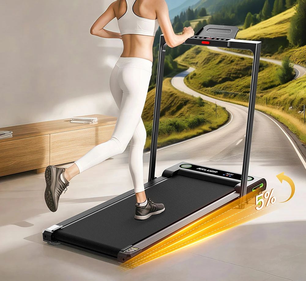 Mit einem Preis von nur 159,99 Euro dank des Rabattcodes NNNAK48LB kaum teurer fällt das Akluer 480L-B aus. Dieses Steigungswalkingpad wartet neben einer rund 40 x 100 cm großen Lauffläche unter anderem mit einem Griff auf und wird ebenfalls von einem 2,5 PS starken Motor angetrieben. Auch hier ist eine Steigung bis 5 Grad möglich, um noch mehr Muskeln zu aktivieren.