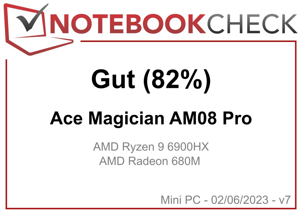 | 82 % v7 (old) | 06 / 2023 | ACEMagician Ace Magician AM08 Pro R9 6900HX, Radeon 680M | 874 g | 32768 MB | |