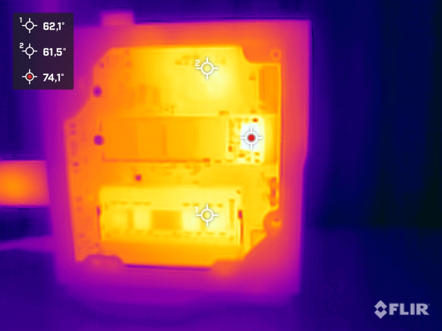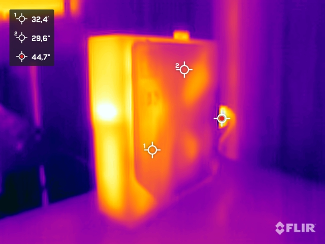 (±) Auf der Unterseite messen wir eine maximalen Wert von 40.7 °C (im Vergleich zum Durchschnitt von 36.3 °C).