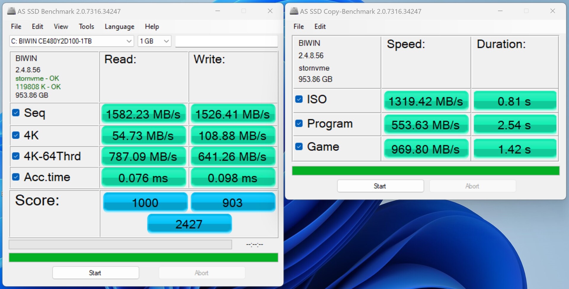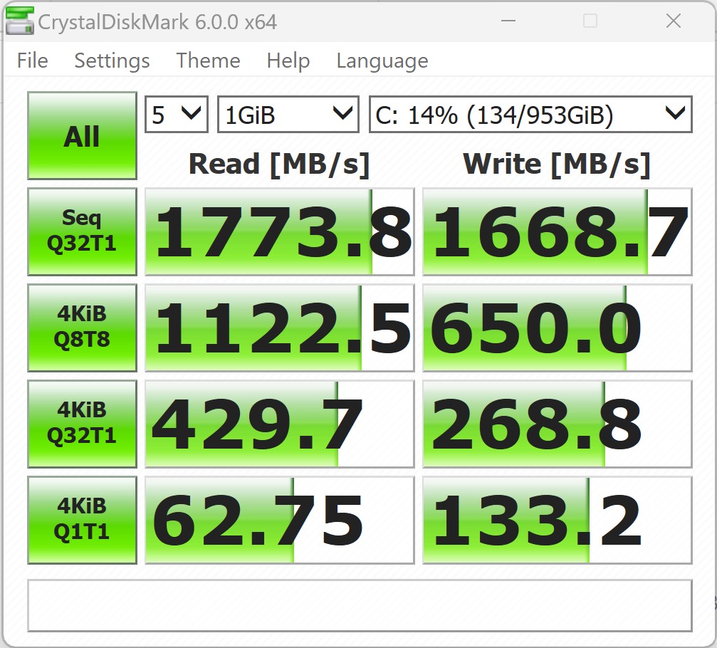 In dem Acemagic S1 wird eine 1024-GB-SSD von BiWin verbaut. Alternativ gibt es den Mini-PC auch mit einem 512-GB-Modell. Als Schnittstelle wird der M.2-2280-Port genutzt, welcher PCIe-3.0-x2-Geschwindigkeit bietet. Bei unseren Tests kann das verbaute Modell mit einer soliden Leistung überzeugen. Die BiWin SSD leistet sich keine signifikanten Patzer, und während unserer Tests kam es zu keinen Problemen. Das Thema Kühlung hat Acemagic beim S1 ebenfalls gut im Griff, wie man anhand der Dauerleistung erkennen kann. Hier leistet sich allerdings keiner der Kontrahenten einen Patzer. Mit 1 TB ist der Acemagic S1 recht gut bestückt. Sollte der Speicherplatz dennoch nicht reichen, kann man den S1 mit einem weiteren M.2-Modul ausstatten.