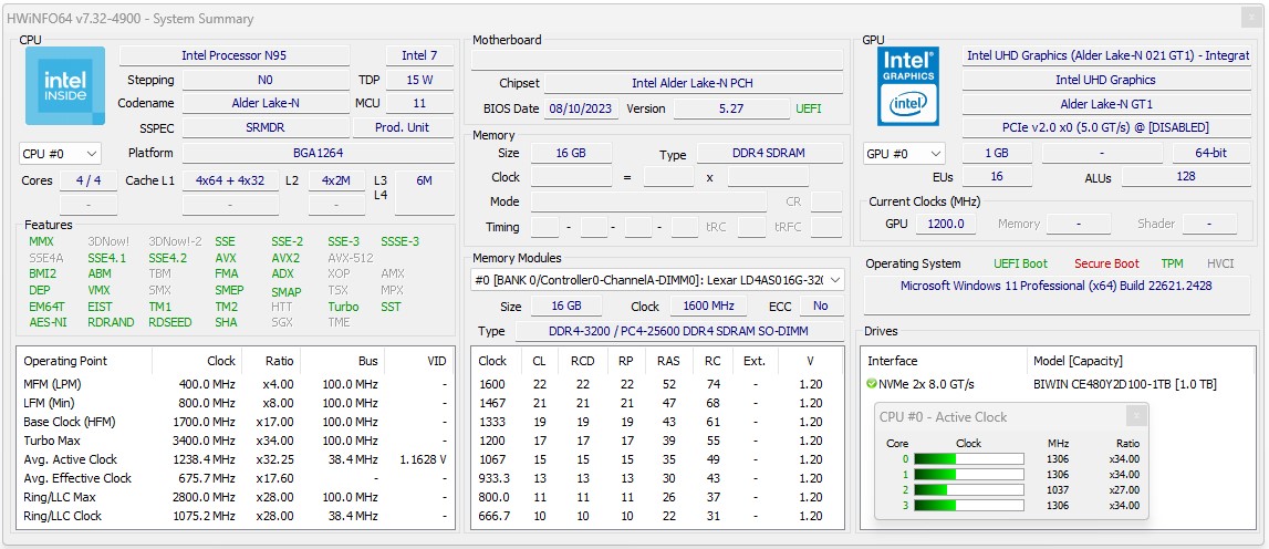 | 71.1 % v7 (old) | 07 / 2023 | BOSGAME N95 N95, UHD Graphics 24EUs (Alder Lake-N) | 392 g | 179 EUR |