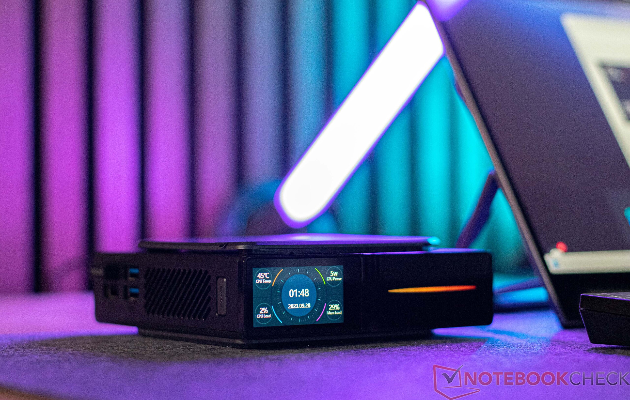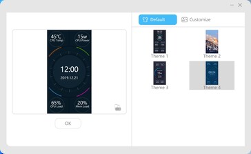 In der Vorderseite des Acemagic S1 verbaut der Hersteller einen kleinen LCD-Bildschirm, welcher neben der Uhrzeit im ausgeschalteten Zustand noch einige wichtige Systeminformationen anzeigen kann. Über ein kleines Tool lässt sich die Oberfläche personalisieren. So kann man unter anderem das Hintergrundbild ändern, und auch die angezeigten Informationen können an- oder abgewählt werden. Auch die Ausrichtung lässt sich ändern, denn der Acemagic S1 ist auch horizontal verwendbar.