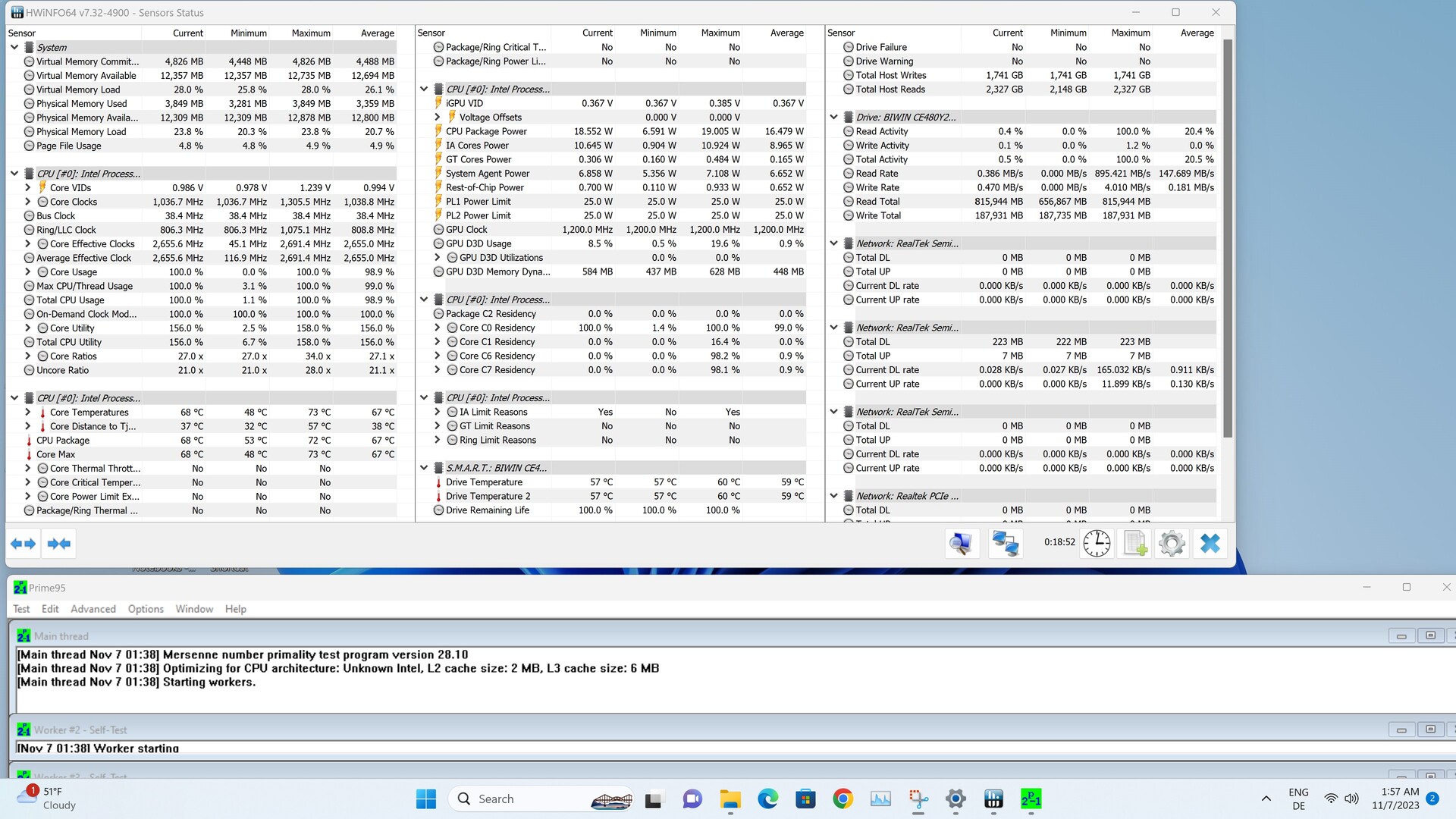 Bei den Latenzen punktet der Acemagic S1 mit guten Ergebnissen. Dennoch meldet uns LatencyMon leichte Probleme bei der Wiedergabe von Audio- und Videoquellen. Beim Öffnen mehrerer Tabs im Edge Browser hat unser Testgerät allerdings keine Probleme. Auch Prime95 kann die Latenzen nicht negativ beeinflussen.
