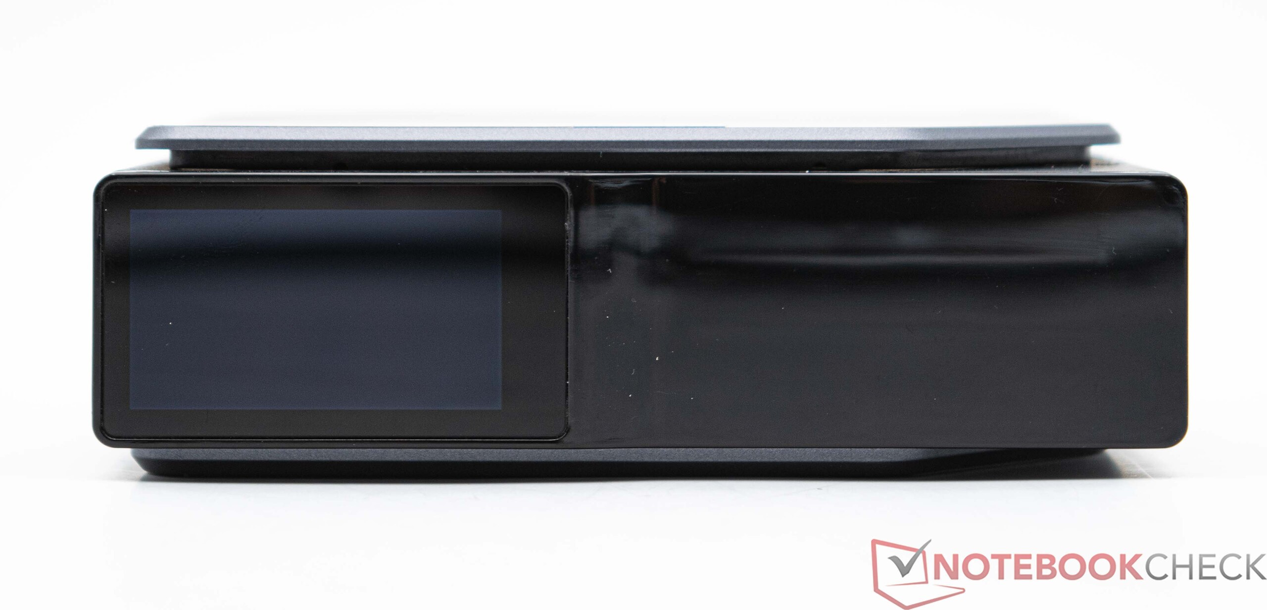 Der Acemagic S1 besteht zum Großteil aus Kunststoff, unser Testgerät ist rundum gut verarbeitet. An der Vorderseite ist ein kleines Display eingebaut, welches einigen Daten über den Mini-PC anzeigt. Der Acemagic S1 kann sowohl vertikal als auch horizontal betrieben werden. Der Standfuß ist Teil des Lieferumfanges und hält via magnetischer Verbindung am Hauptgerät. Dadurch benötigt das Gerät deutlich weniger Platz auf dem Schreibtisch. Im horizontalen Betrieb benötigt der Acemagic S1 etwa 12,4 x 12,8 Zentimeter, was im Vergleich zu einigen anderen Mini-PCs etwas mehr ist. Mit 440 Gramm ist unser Testgerät inklusive Standfuß allerdings nicht übermäßig schwer. Ohne den Standfuß sind es hingegen nur 380 Gramm, die unsere Waage anzeigt. Am Gehäuse selbst gibt es nicht viel auszusetzen. Die von vorn betrachtete linke Seite lässt sich leicht entfernen, um an RAM und SSD zu gelangen. Gleichzeitig gibt es dort ein kleines Sichtfenster, was aber keinen Sinn ergibt, denn beleuchtet ist im Gerät selbst nichts.