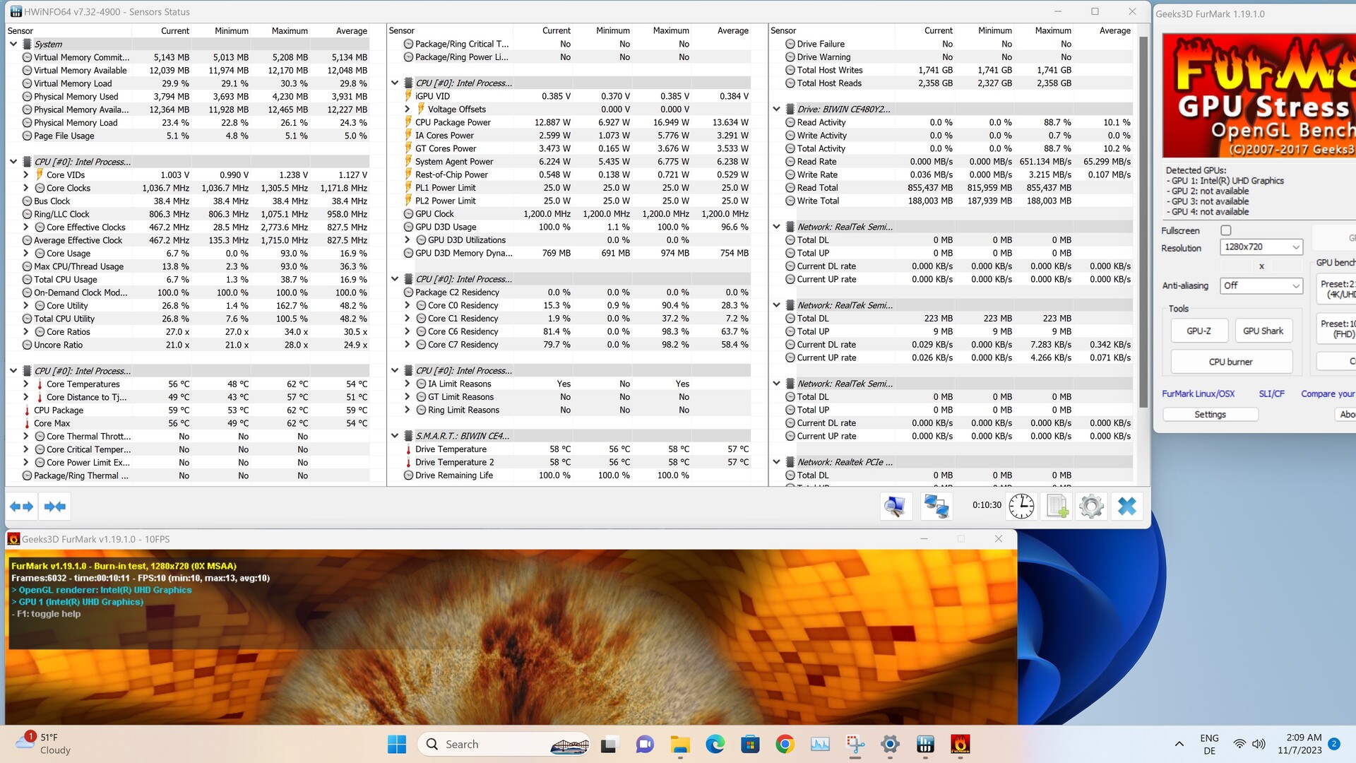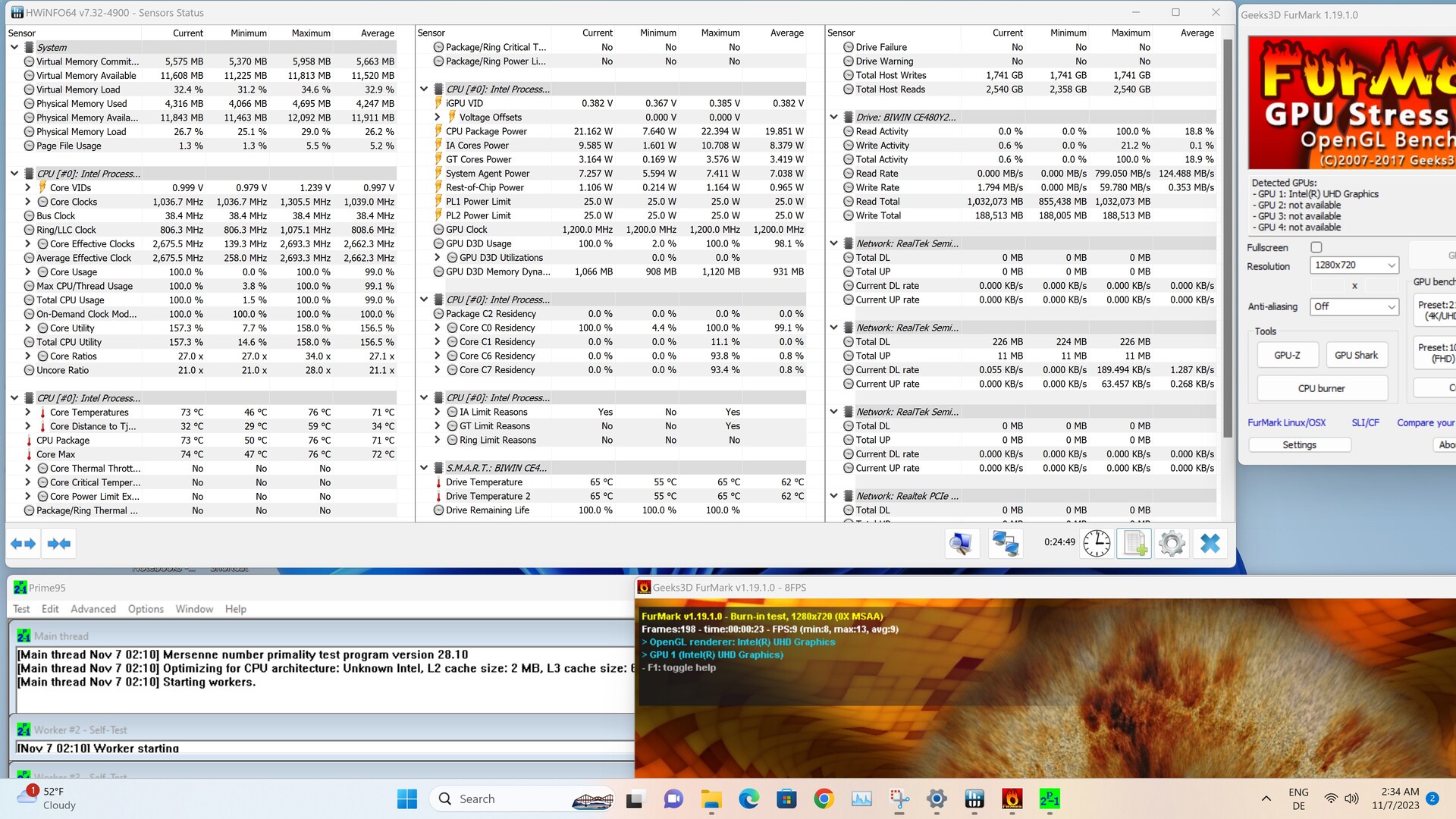Hitzeprobleme hat der Acemagic S1 zu keiner Zeit. Sowohl bei den Gehäusetemperaturen als auch beim Prozessor selbst erreichen wir unter Last keine kritischen Werte. Die höchste Temperatur (76 °C) des SoC sehen wir beim Stresstest, indem wir FurMark und Prim95 zeitgleich laufen lassen. Der Maximalwert bildet jedoch nicht den kompletten Testzeitraum ab. Hier pendelt sich die Temperatur bei lediglich 71 °C ein.