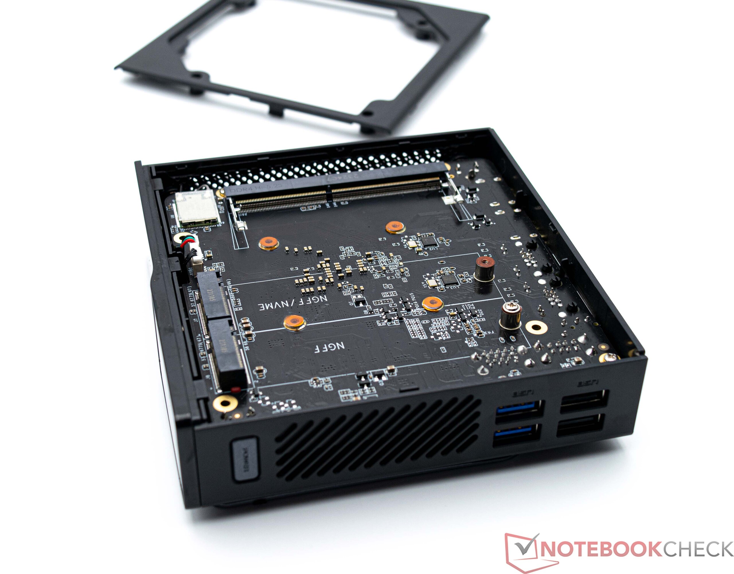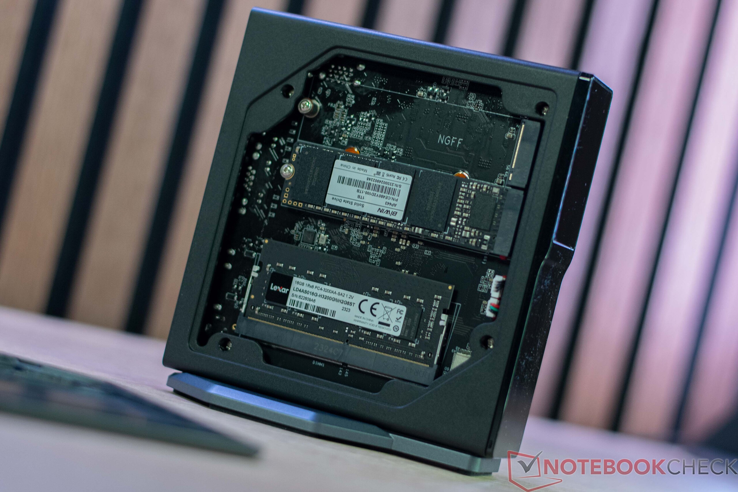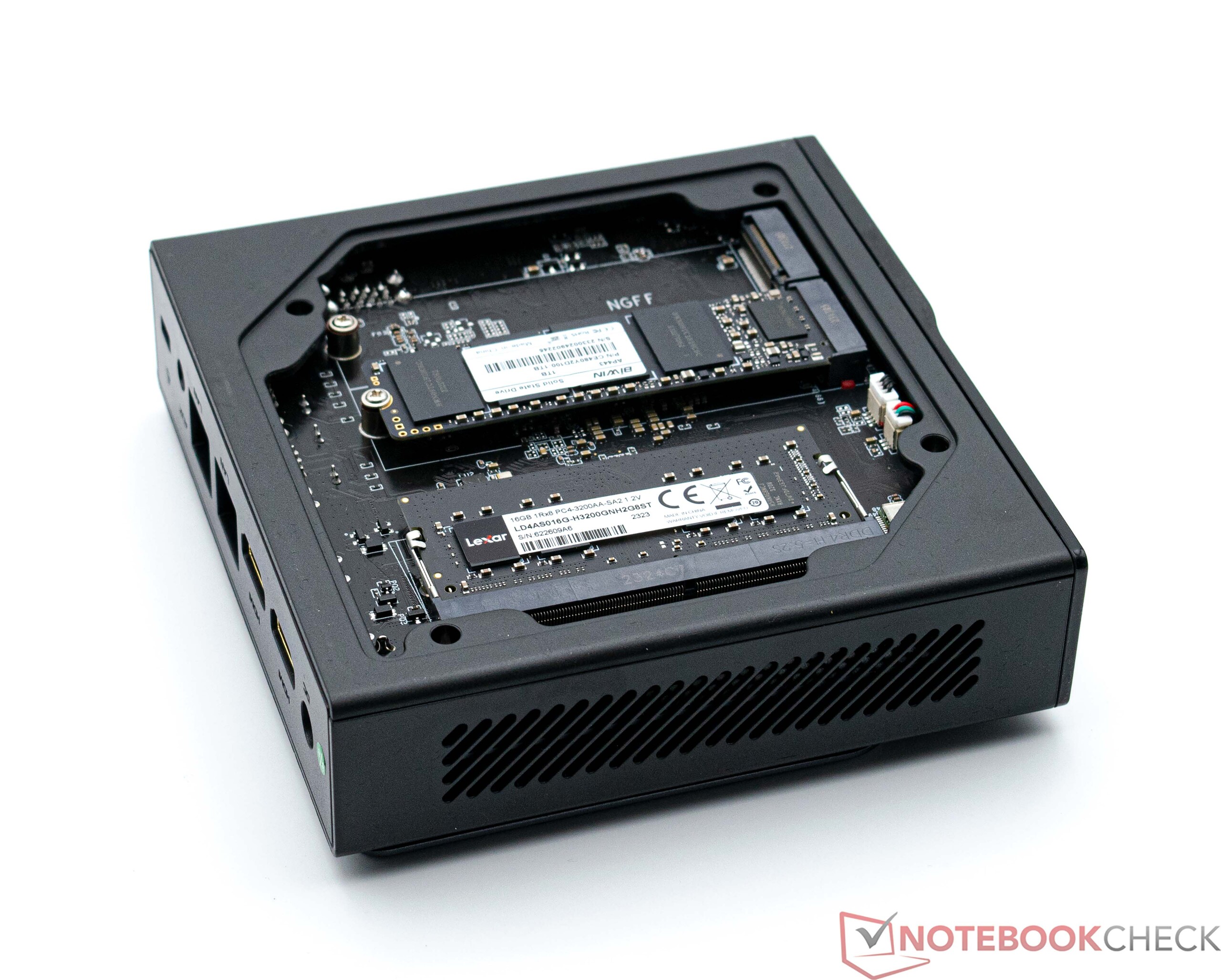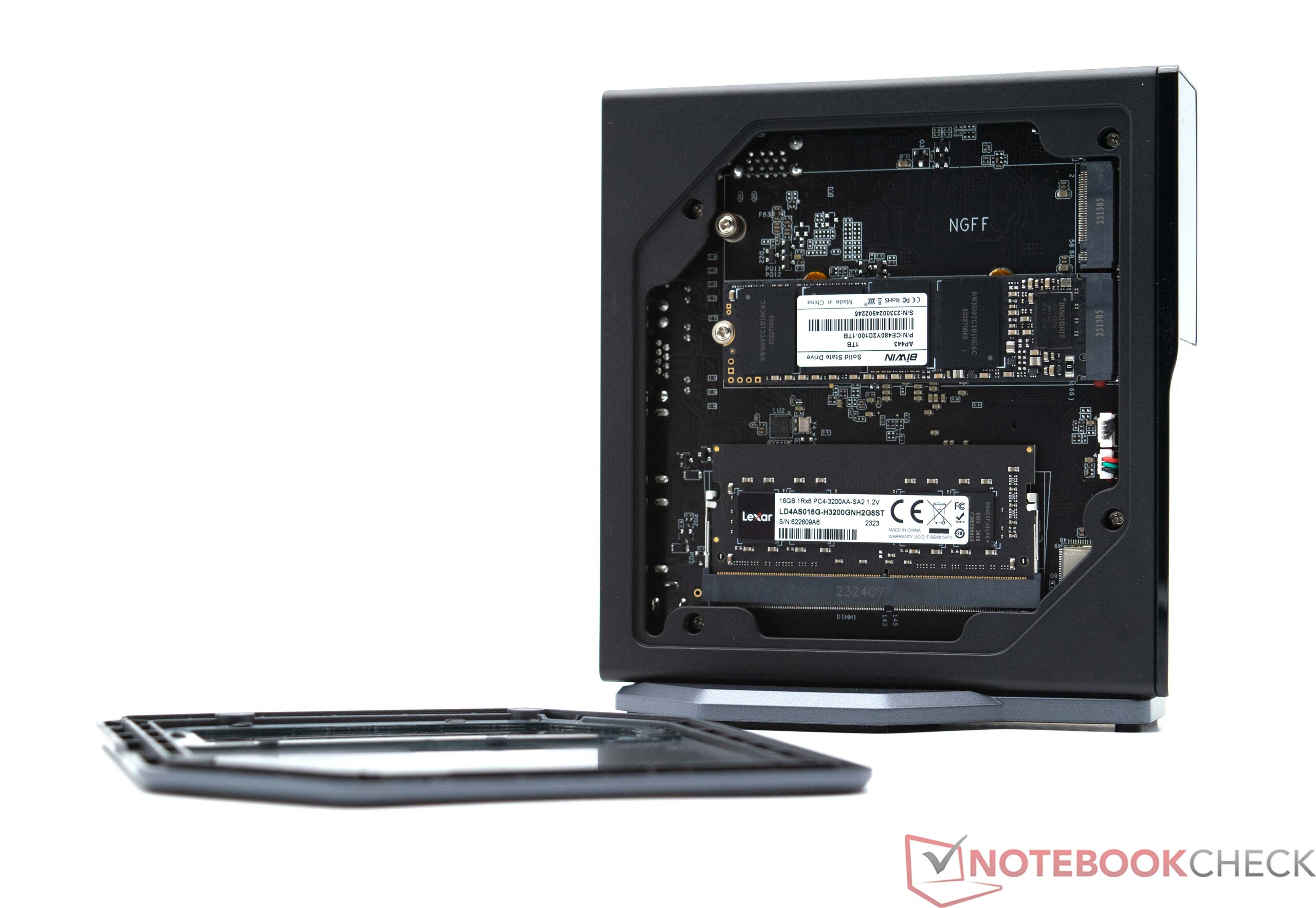 Wer den Acemagic S1 aufrüsten möchte, kann dies problemlos erledigen. Allerdings kann lediglich ein zweiter Datenträger installiert werden. Das Öffnen ist ohne Werkzeug möglich, denn die Wartungsklappe ist magnetisch am Gehäuse befestigt. Soll der Lüfter gereinigt werden, muss das Gerät weiter zerlegt werden. Mit etwas Geschick ist dies aber auch möglich.