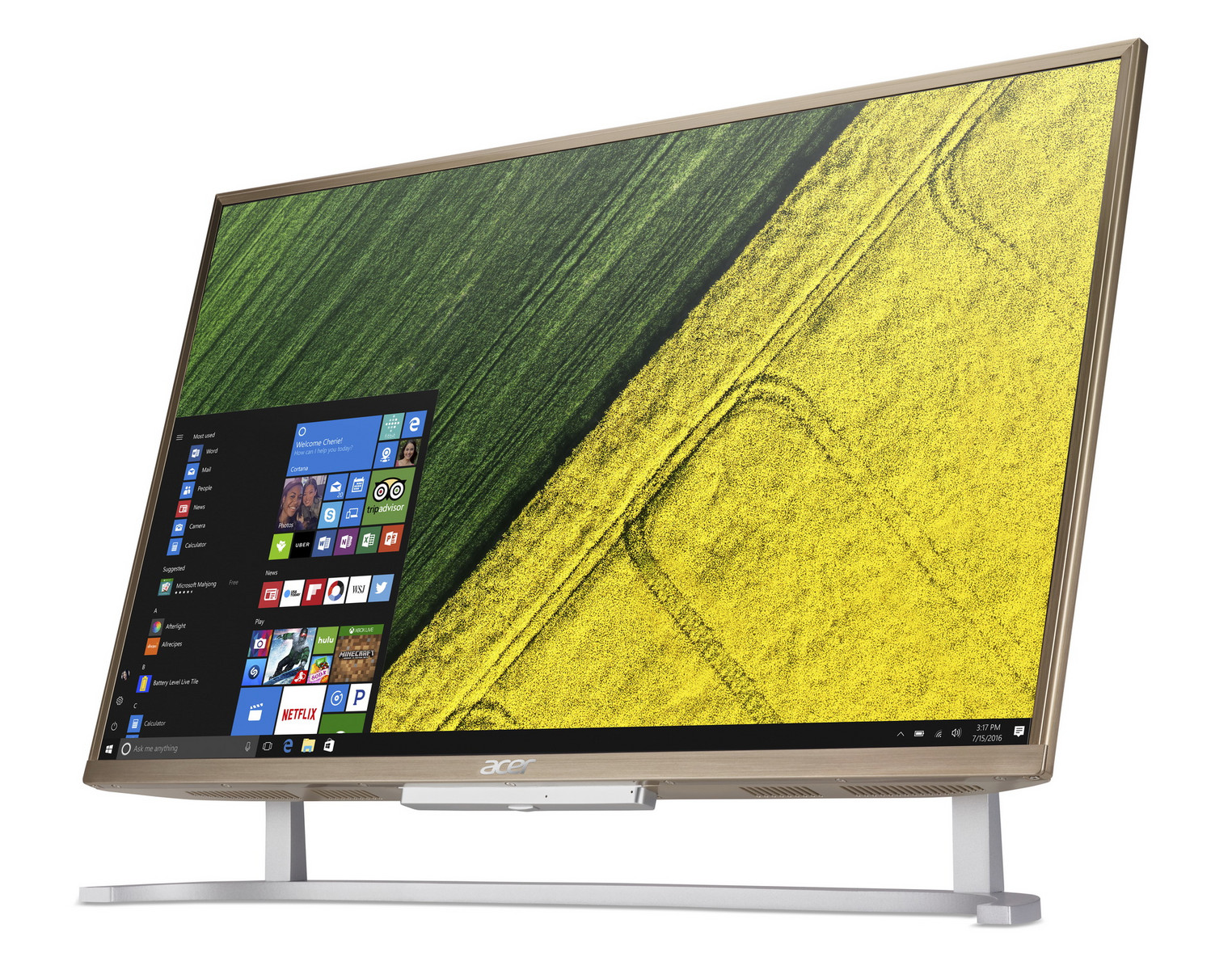 Mit den neuen All-in-One-PCs der Serien Aspire C24 und C22 präsentiert Acer besonders dünne AiOs im edlen Alu-Design. Das im Displaybereich 8 Millimeter schlanke Gehäuse der AiO-PCs beherbergt neben dem 23,8 Zoll respektive 21,5 Zoll großen Full-HD-Display mit 1.920 x 1.080 Pixeln im unteren Teil auch alles, was zum Computer dazugehört. Ein Metallfuß bietet dem AiO zudem einen sicheren Stand.