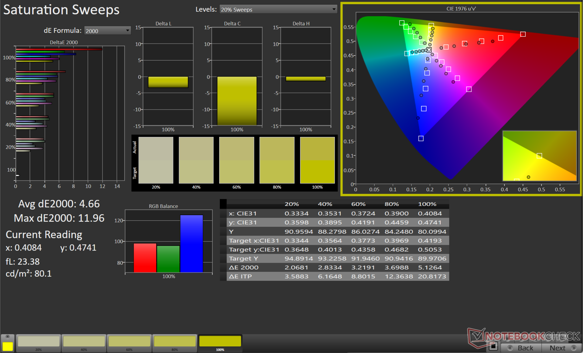 | Display P3 Coverage (%) | 36.6 | 37 1% | 40.09 10% | 38.9 6% | 40 9% | 99.9 173% | 42.3 16% | 36 -2% |