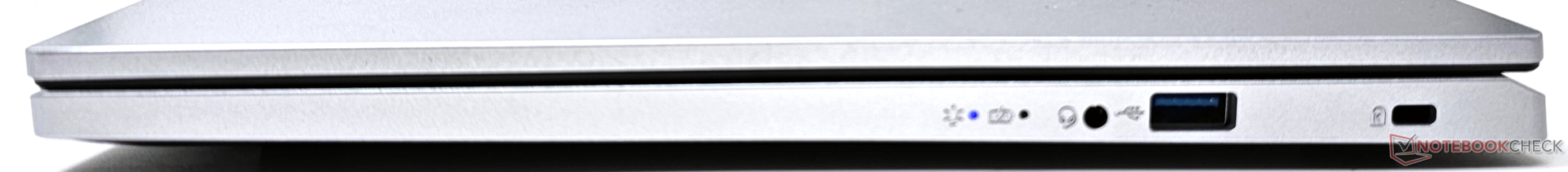 Das Notebook verfügt über eine Lüftungsöffnung auf der Rückseite, die für den einzigen Lüfter ausreicht, um die überschüssige Wärme abzuführen. Acer hat sogar eine Strom- und Lade-LED an der Seite angebracht, direkt neben der 3,5-mm-Audiobuchse.
