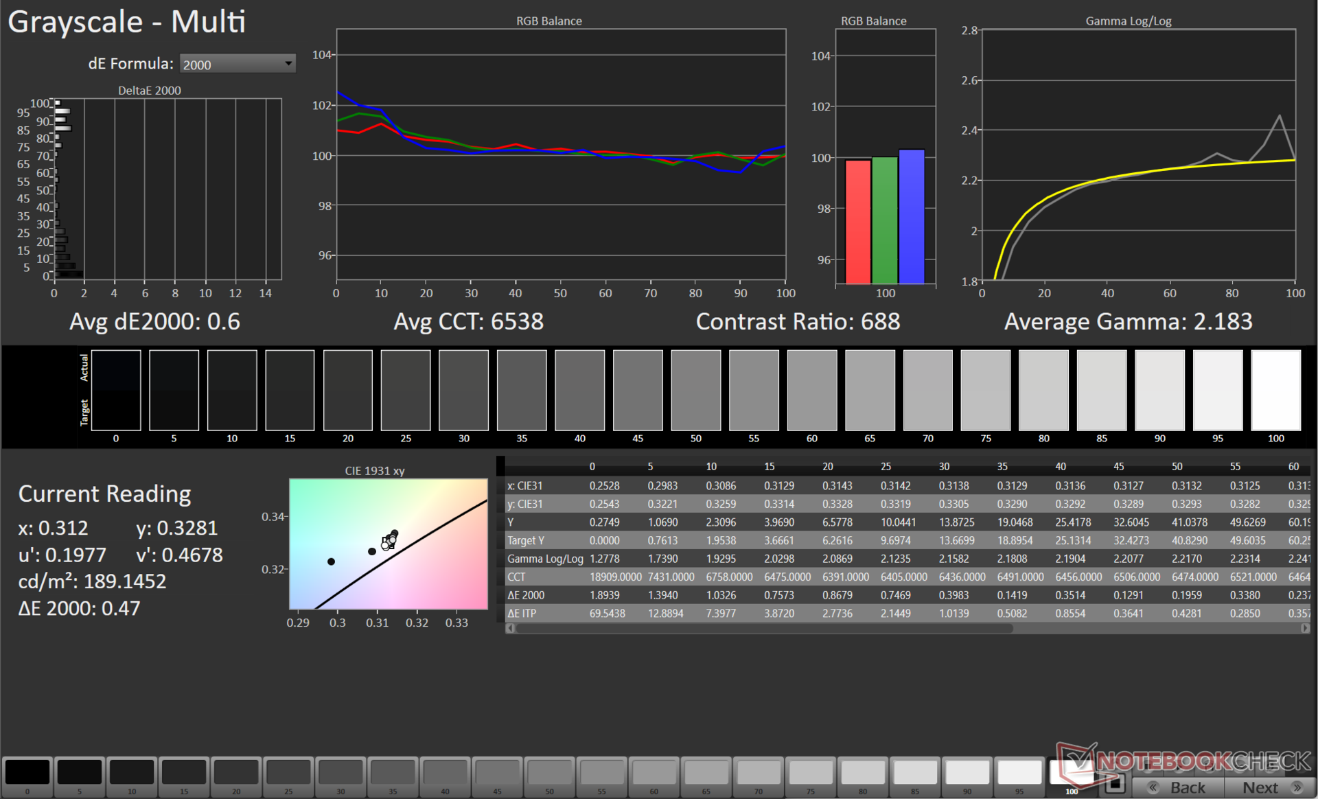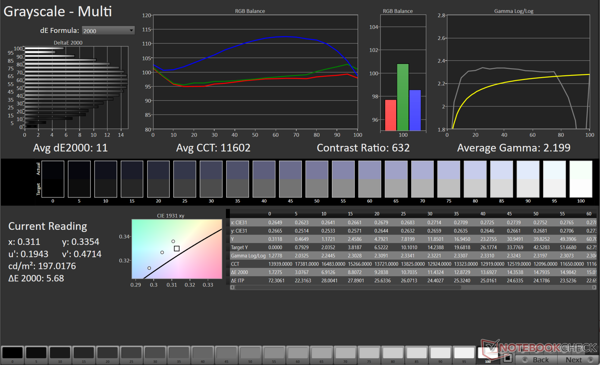 ΔE Greyscale Calman: 11 | ∀{0.09-98 Ø5}