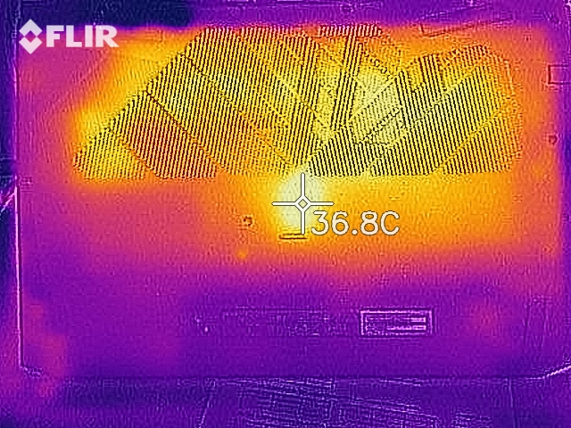 (+) Die Handballen und der Touchpad-Bereich sind mit gemessenen 31.4 °C kühler als die typische Hauttemperatur und fühlen sich dadurch kühl an.