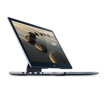 Archive.org versionSo vielfältig sich das Aspire R7 auch formen lässt: Schon nach kurzer Zeit ertappt man sich dabei, dass in der Praxis eigentlich nur zwei Positionen optimal sind. Mit weit an die Tastatur herangezogenem Display wird das Arbeiten sehr komfortabel, sofern die genutzte Software touch-optimiert ist.