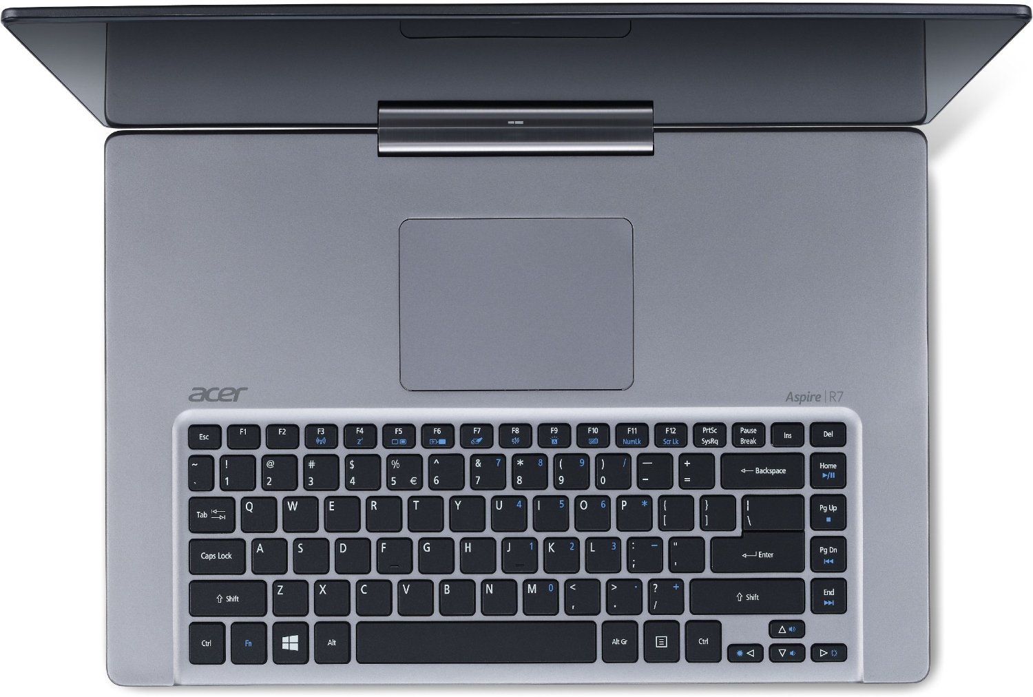EN→DE Archive.org versionAcer's Aspire R7 challenges the concept of conventional notebook layout by placing the touchpad above the keyboard. Ultimately, it's what makes the R7 so hard to get used to, even after prolonged usage. We like its screen though, and the Ezel hinge allows it to be positioned in many interesting ways.