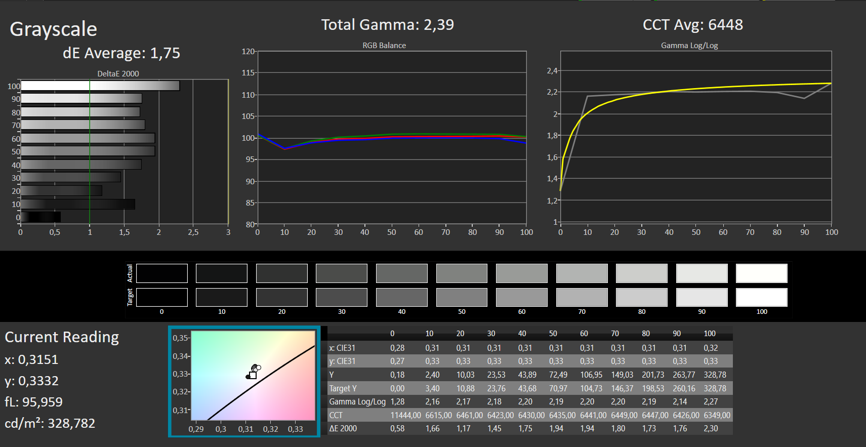 ΔE Greyscale Calman: 1.75 | ∀{0.09-98 Ø5}