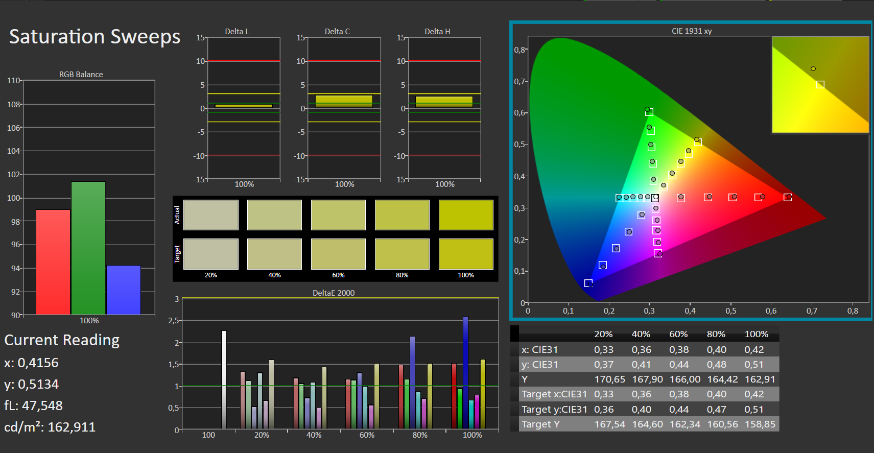 ΔE ColorChecker Calman: 1.31 | ∀{0.5-29.43 Ø4.76}