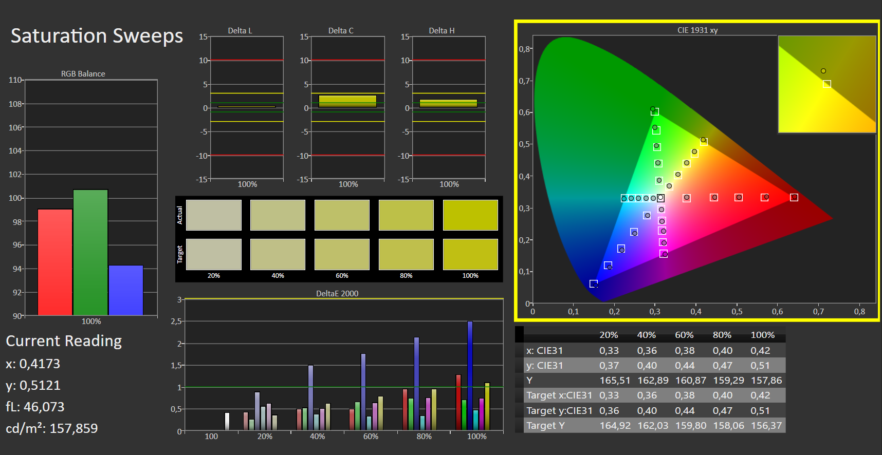 ΔE ColorChecker Calman: 1.31 | ∀{0.5-29.43 Ø4.78}