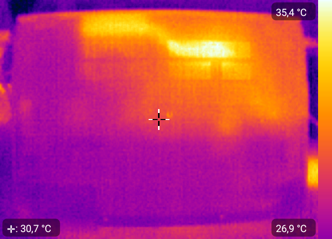 (+) Auf der Unterseite messen wir eine maximalen Wert von 35.9 °C (im Vergleich zum Durchschnitt von 36.8 °C).