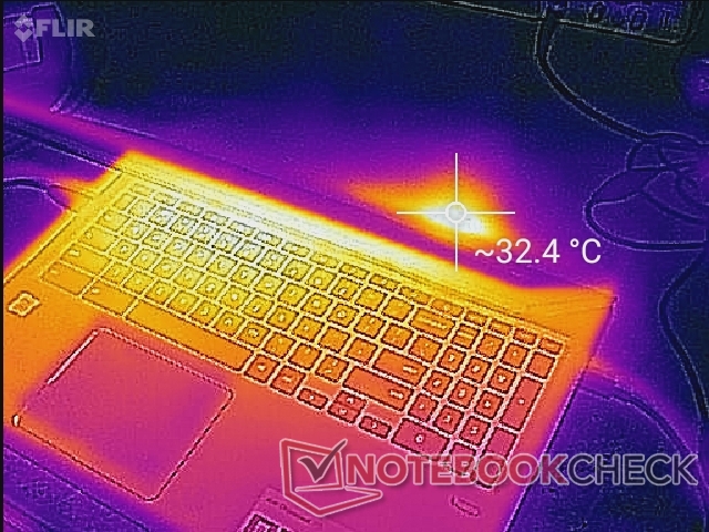 (±) Die Handballen und der Touchpad-Bereich können sehr heiß werden mit maximal 38.8 °C.