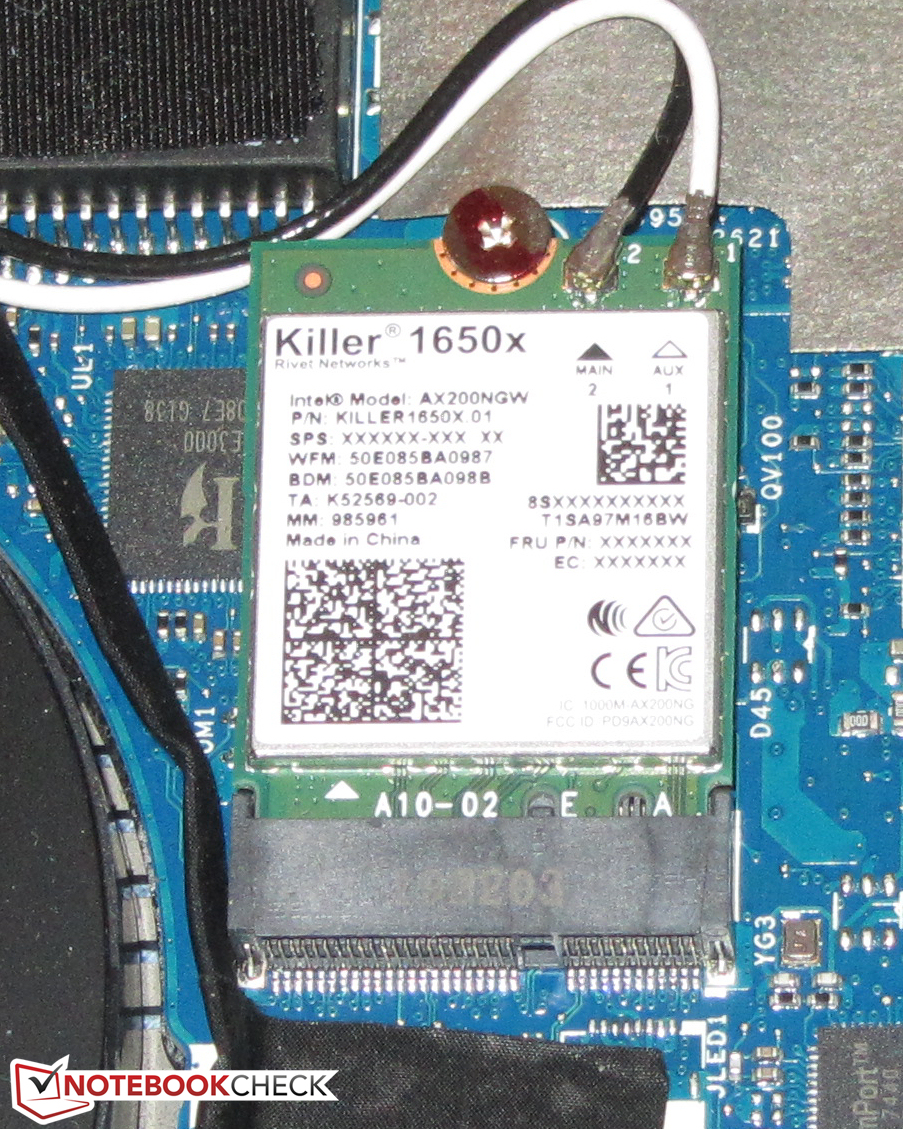 Das WLAN-Modul der Firma Killer unterstützt neben den WLAN-Standards 802.11a/b/g/n/ac auch den schnellen ax-Standard. Die von uns unter optimalen Bedingungen (keine weiteren WLAN-Geräte in der näheren Umgebung, geringer Abstand zwischen Notebook und Server-PC) ermittelten Übertragungsgeschwindigkeiten fallen sehr gut aus. Drahtgebundene Netzwerkverbindungen wickelt ein Killer-E3000-Gigabit-Ethernet-Controller ab. Dieser erledigt seine Aufgaben reibungslos.