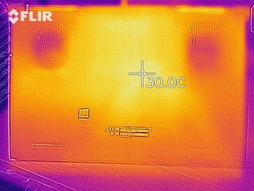 (+) Die Handballen und der Touchpad-Bereich erreichen maximal 32.2 °C und damit die typische Hauttemperatur und fühlen sich daher nicht heiß an.