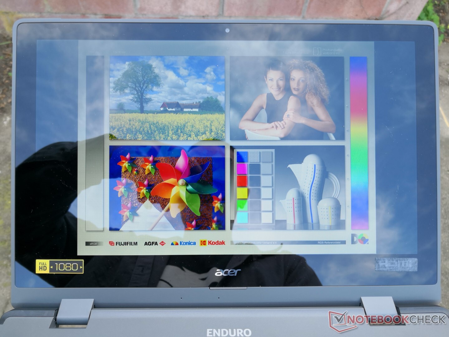 Die Lesbarkeit im Freien ist insgesamt besser als bei den meisten Laptops und insbesondere dem Dell XPS, da das Display unseres Acer-Laptops sichtbar heller werden kann. Trotzdem sind Reflexionen weiterhin erkennbar und aufgrund des reflektiven Panels auch schwer zu ignorieren. Eine matte Displayoption hätte hier Abhilfe schaffen können, stattdessen beinhalten alle Konfigurationen gezwungenermaßen ein reflektives Display.