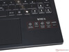 Pfeiltasten sowie Steuertasten (W, A, S, D) der verbauten Chiclet-Tastatur sind optisch hervorgehoben, können aber nicht individuell beleuchtet werden. Das Keyboard kennt nur drei Beleuchtungszonen aber keine Einzeltastenbeleuchtung. Gut: Die Pfeiltasten liegen in normaler Größe vor. Alle Tasten des Eingabegeräts verfügen über einen kurzen Hub und einen klaren Druckpunkt. Der Tastenwiderstand geht in Ordnung. Ein leichtes Wippen der Tastatur während des Tippens stört nicht weiter.