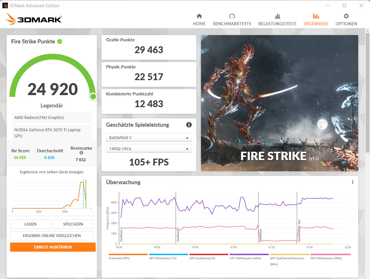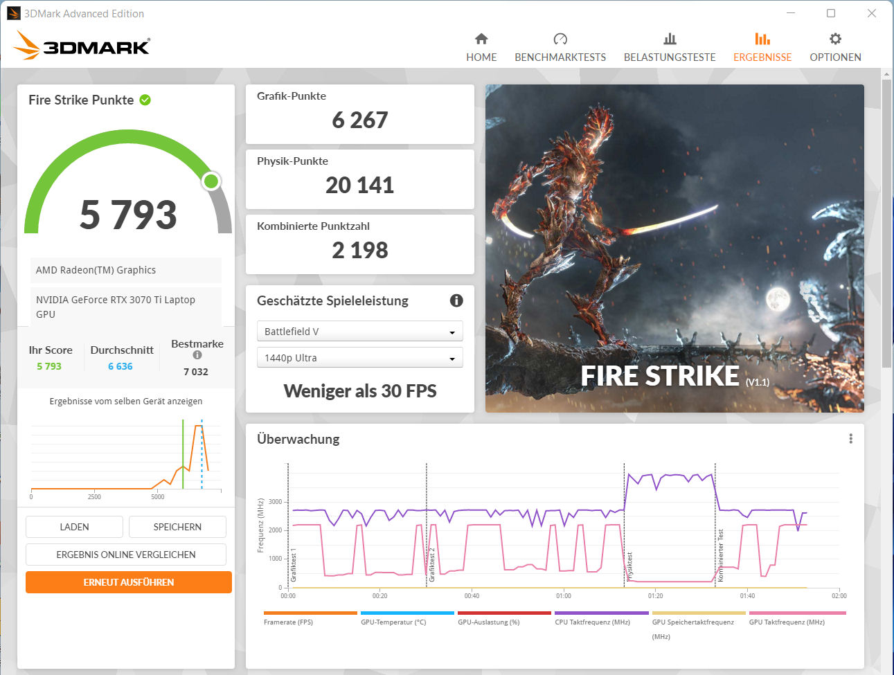 | Acer Nitro 5 AN515-46-R1A1 R7 6800H, GeForce RTX 3070 Ti Laptop GPU, Micron 3400 1TB MTFDKBA1T0TFH, IPS, 1920x1080, 15.6" | MSI Katana GF66 12UGS i7-12700H, GeForce RTX 3070 Ti Laptop GPU, Micron 2450 1TB MTFDKBA1T0TFK, IPS, 1920x1080, 15.6" | Schenker XMG Fusion 15 (Mid 22) i7-11800H, GeForce RTX 3070 Laptop GPU, Samsung SSD 980 Pro 1TB MZ-V8P1T0BW, IPS, 2560x1440, 15.6" | Asus TUF Dash F15 FX517ZR i7-12650H, GeForce RTX 3070 Laptop GPU, Samsung PM991a MZVLQ1T0HBLB, IPS, 2560x1440, 15.6" | Acer Nitro 5 AN515-58-72QR i7-12700H, GeForce RTX 3070 Ti Laptop GPU, Samsung PM9A1 MZVL21T0HCLR, IPS, 2560x1440, 15.6" | Durchschnittliche NVIDIA GeForce RTX 3070 Ti Laptop GPU | Durchschnitt der Klasse Gaming | |