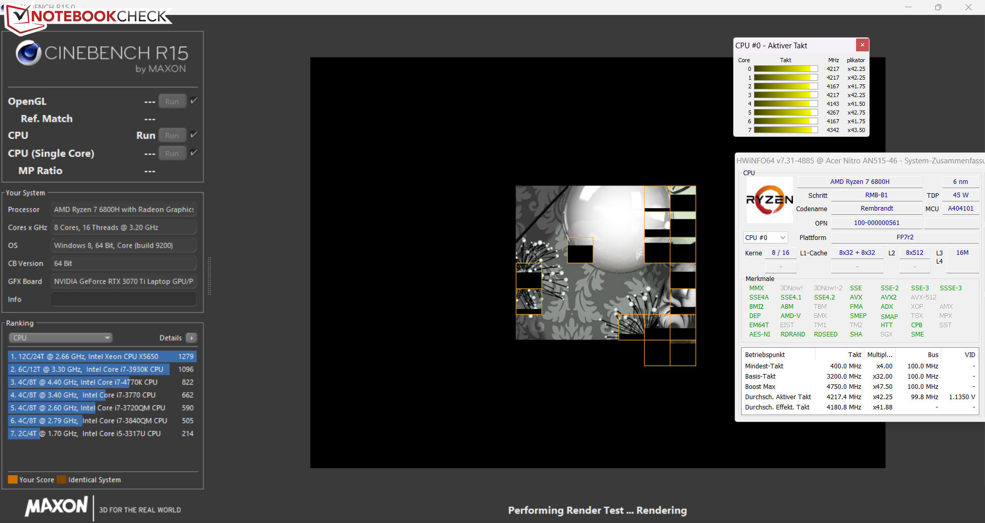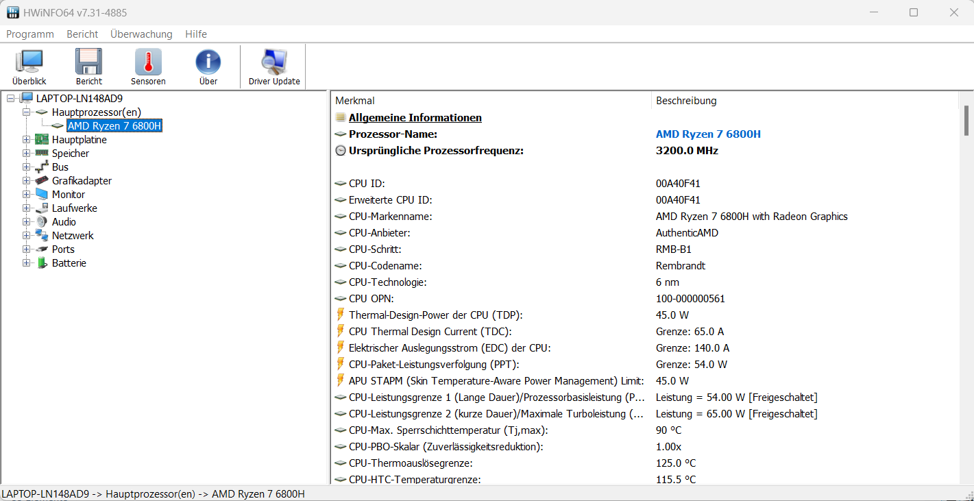 | Durchschnittliche AMD Ryzen 7 6800H (2886 - 3634, n=8) | |