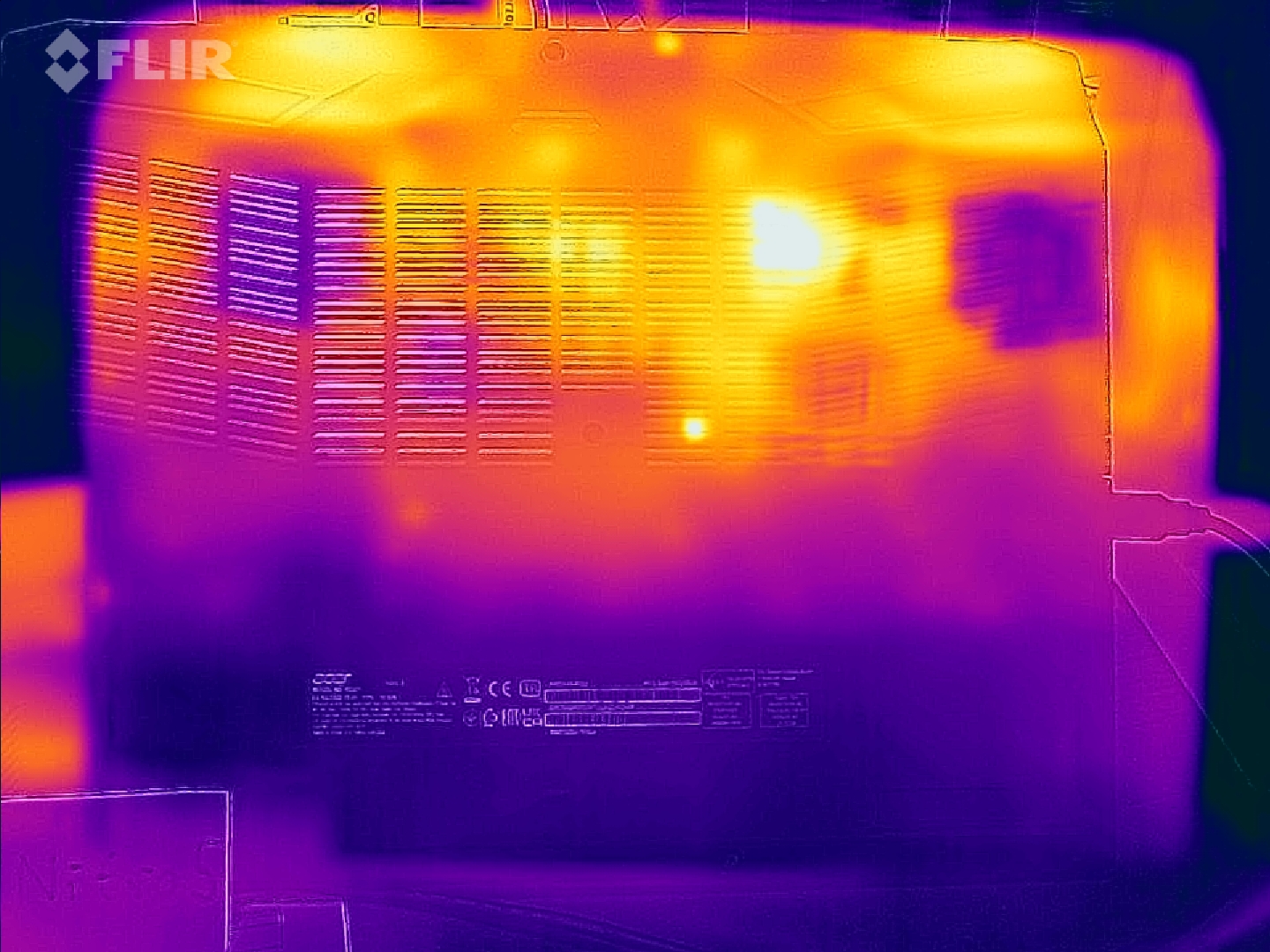 (-) Auf der Unterseite messen wir eine maximalen Wert von 49.7 °C (im Vergleich zum Durchschnitt von 43.3 °C).