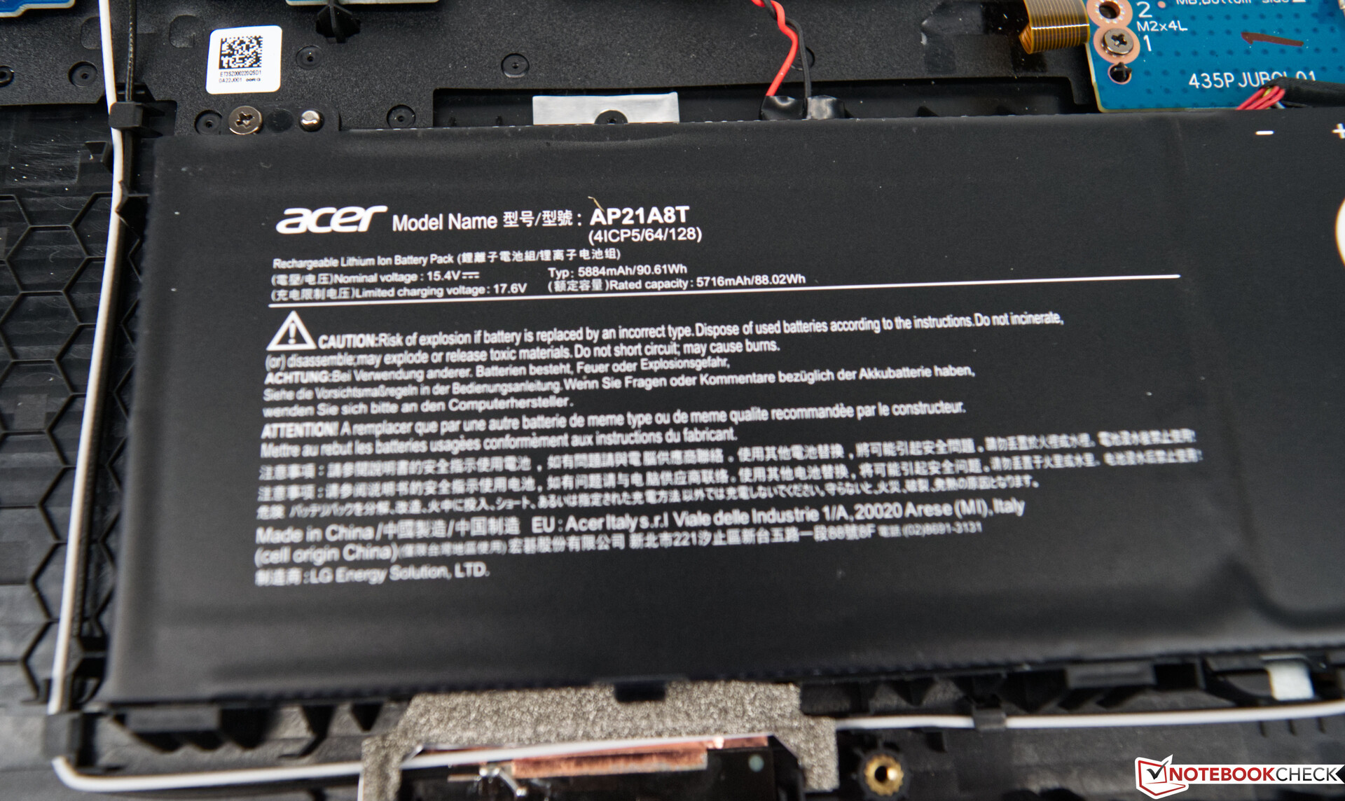 Mit dem fest verbauten 90-Wh-Akku kann das Acer Nitro 5 AN517 beim WLAN-Test knapp 6,5 Stunden mit Energie versorgt werden. Das ist ein guter Wert für ein Gaming-Notebook, welcher hier im Vergleich nur von dem Asus TUF Gaming F17 getoppt werden kann.