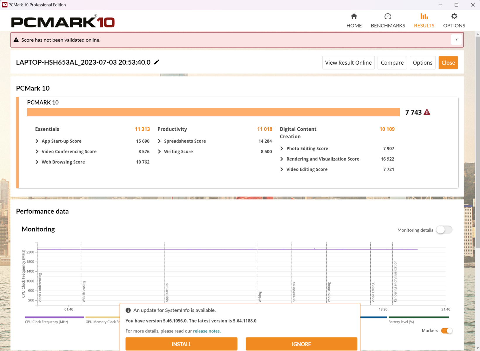 | @Performance Mode | P-Cores / E-Cores Clock (GHz) | GPU Clock (MHz) | Average CPU Temperature (°C) | Average GPU Temperature (°C) |