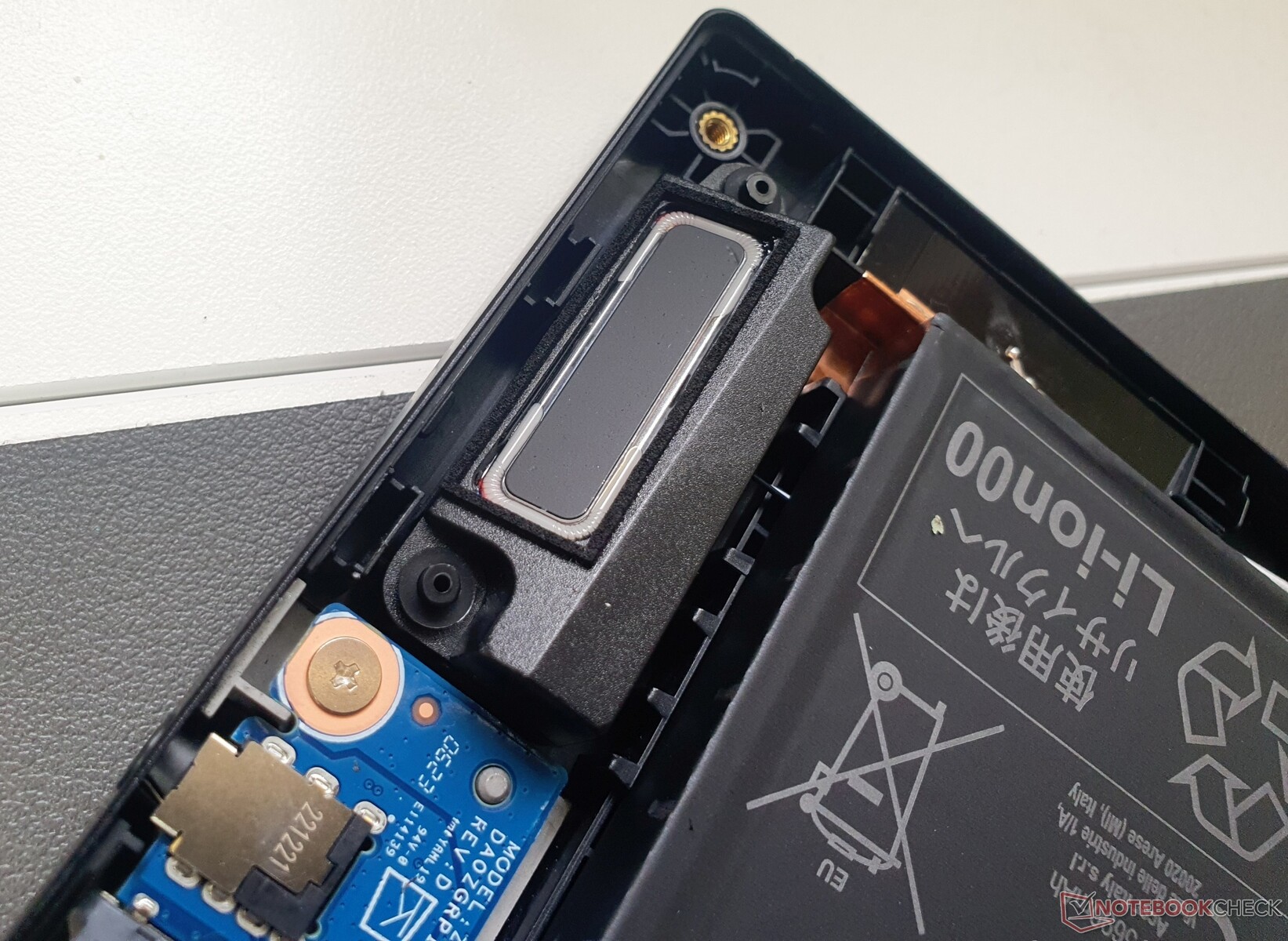 Nach dem Lösen von zehn Torx-T5-Schrauben gelangt man ziemlich einfach ins Gehäuseinnere. Austauschbar sind RAM (zwei Bänke), M.2-2280-SSD (Update: rechts neben der unteren RAM-Bank befindet sich ein zweiter M.2-2280-Slot) und WiFi-Chip. Aber auch der verschraubte Akku und die BIOS-Batterie lassen sich einfach wechseln.