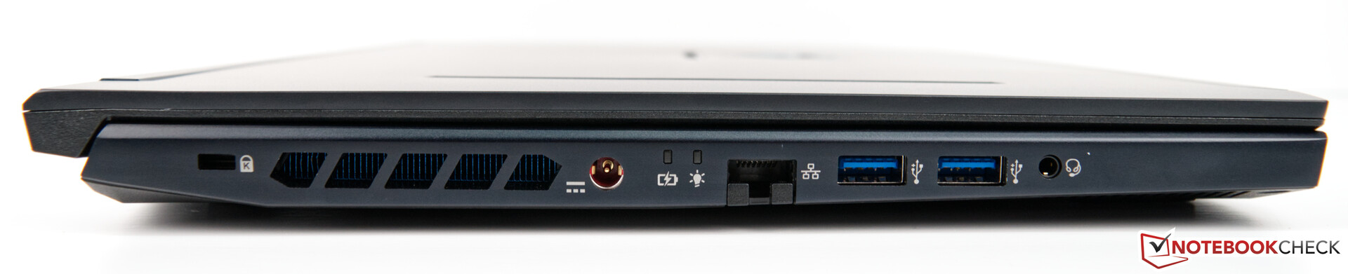 Das Acer Predator Helios 300 bietet grundsätzlich eine gute Anschlussausstattung. Es gibt insgesamt vier USB-Ports, von denen einer auch als USB-C verbaut ist. Außerdem können externe Displays über HDMI oder Mini DisplayPort angesteuert werden. Einen Ethernet-Anschluss finden wir noch auf der linken Seite. Alle Anschlüsse verteilen sich auf die beiden Flanken. Gleichwohl sind diese sehr weit vorn positioniert, da sich im hinteren Bereich die Lüftungsschlitze befinden. Die Positionierung ist dennoch gut und ausreichend Zwischenraum ist vorhanden. Einzig das Fehlen des SD-Kartenlesers könnte den ein oder anderen Nutzer etwas nerven. Abhilfe schafft hier nur ein USB-Adapter.
