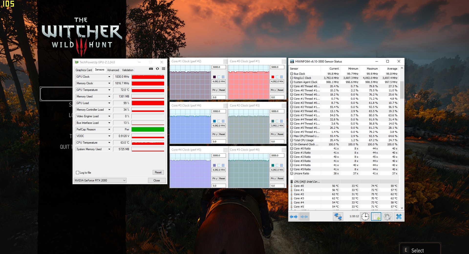 Unter der Haube ist vor allem der Blick auf Prozessor und Grafikkarte spannend. Dass sich der GPU-Modus primär auf die Taktraten bzw. die Lüfterlautstärke und nicht auf die Temperatur auswirkt, belegen unsere Screenshots aus The Witcher 3 und dem Stresstest (eine Stunde Furmark & Prime).
