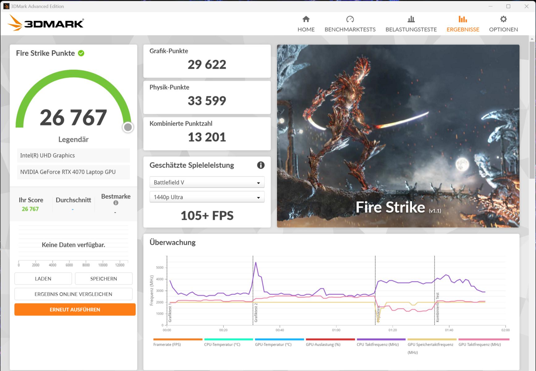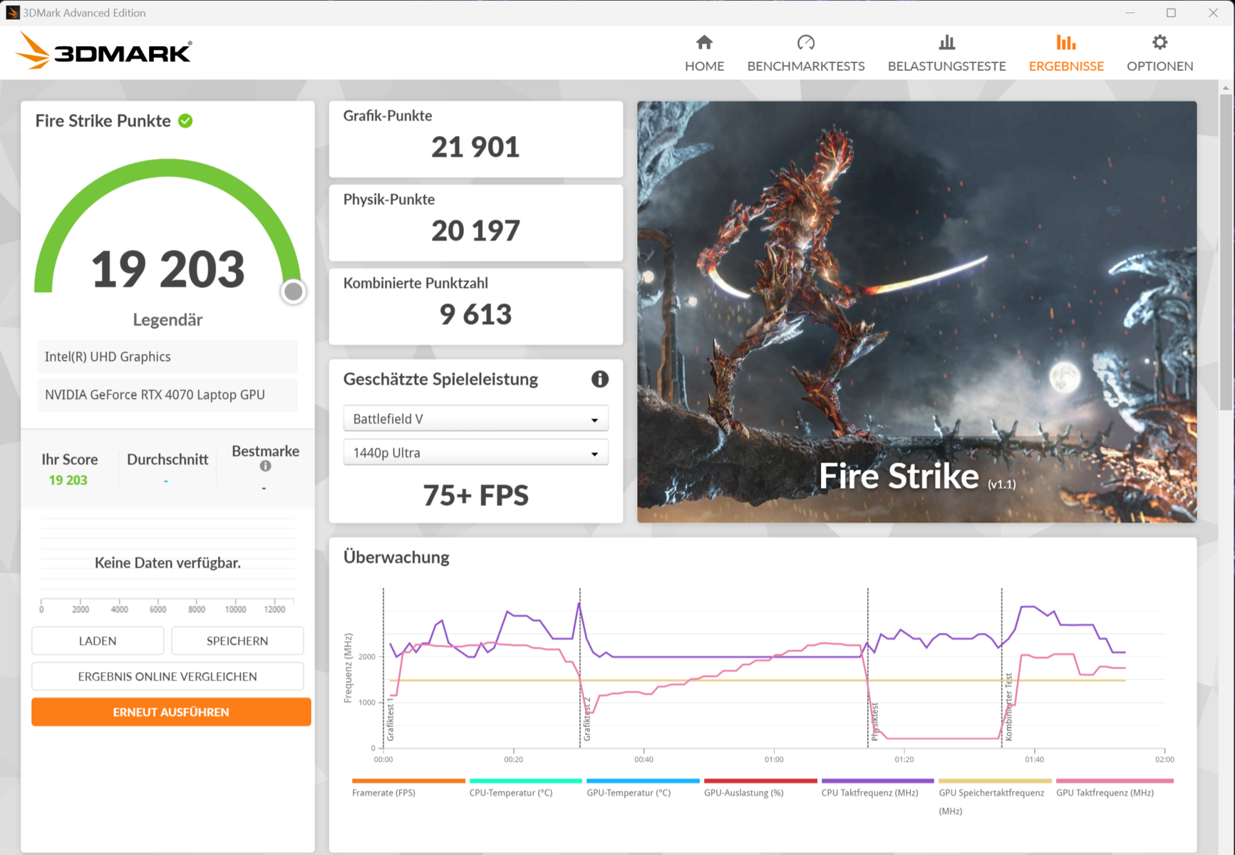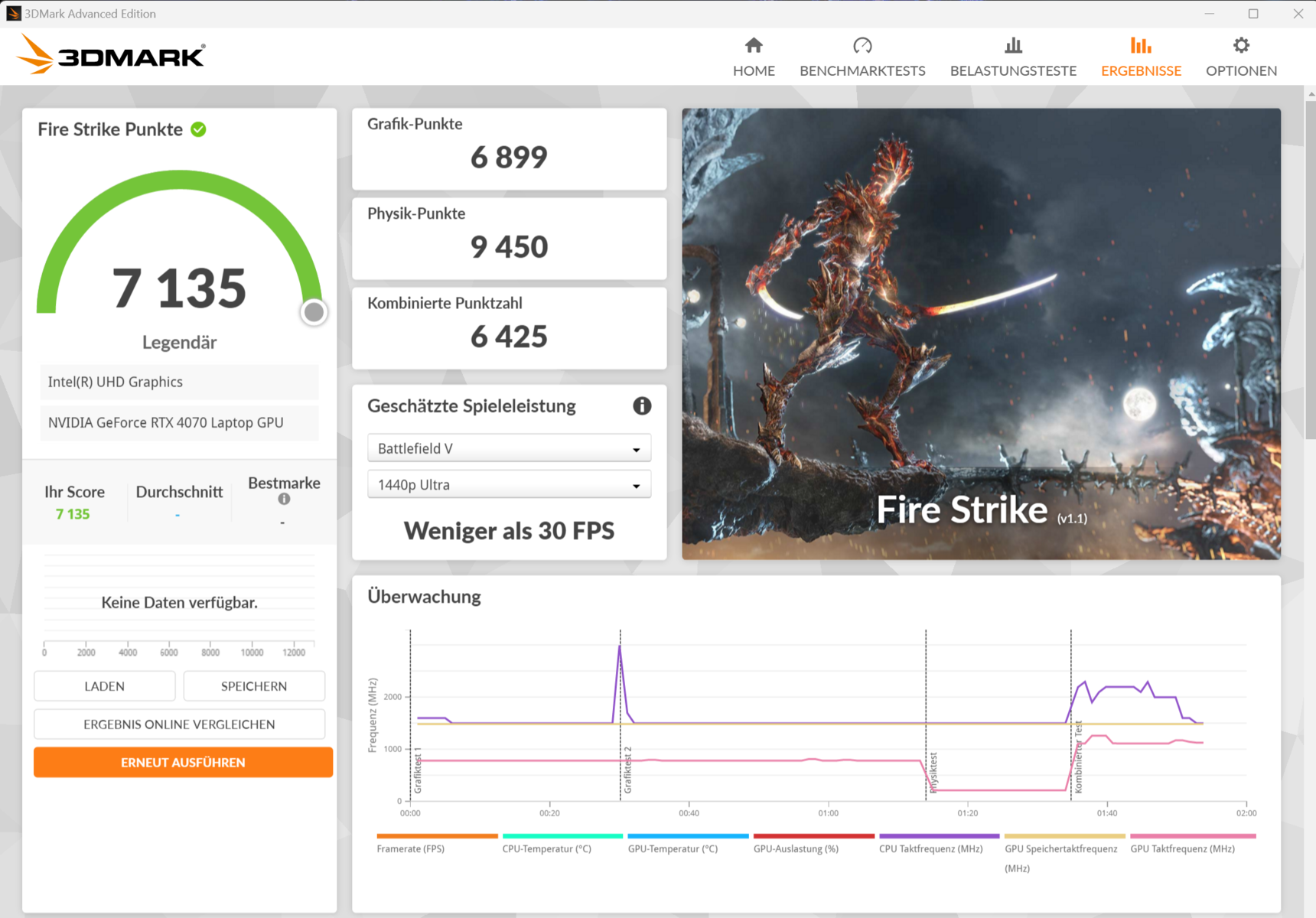 | Acer Predator Helios Neo 16 (2024) i7-14700HX, GeForce RTX 4070 Laptop GPU, Samsung PM9A1a MZVL21T0HDLU, LED, 2560x1600, 16" | Aorus 16X 2024 i9-14900HX, GeForce RTX 4070 Laptop GPU, Gigabyte AG450E1024-SI, IPS, 2560x1600, 16" | Alienware m16 R2 Ultra 7 155H, GeForce RTX 4070 Laptop GPU, Samsung PM9A1 MZVL21T0HCLR, IPS, 2560x1600, 16" | HP Omen Transcend 16-u1095ng i9-14900HX, GeForce RTX 4070 Laptop GPU, Kioxia XG8 KXG80ZNV1T02, OLED, 2560x1600, 16" | Asus TUF Gaming A17 FA707XI-NS94 R9 7940HS, GeForce RTX 4070 Laptop GPU, WD PC SN560 SDDPNQE-1T00, IPS, 1920x1080, 17.3" | Durchschnittliche NVIDIA GeForce RTX 4070 Laptop GPU | Durchschnitt der Klasse Gaming | |