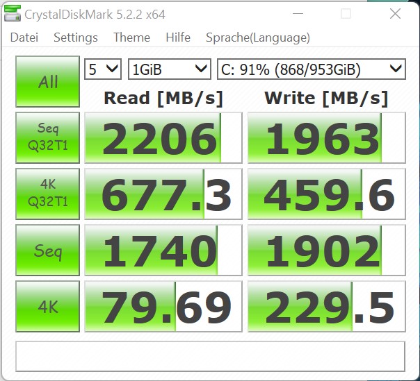 Dass bei den Benchmarks zur System-Performance nicht dauerhaft die volle Leistung abgerufen wird, kommt dem Acer Predator Orion 3000 deutlich entgegen. Die Ergebnisse sind gut und nur wenige Prozentpunkte schlechter als beim Intel Dragon Canyon NUC mit Intel Core i9-12900. Der Arbeitsspeicher performt im Vergleich zu den Vergleichsgeräten hier im Test recht gut, wenngleich hier mit schnellerem RAM und geringeren Latenzen noch etwas mehr Leistung herausgeholt werden könnte.
