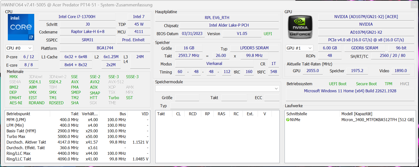Leistung - Raptor Lake und Ada Lovelace treiben das Acer Notebook an