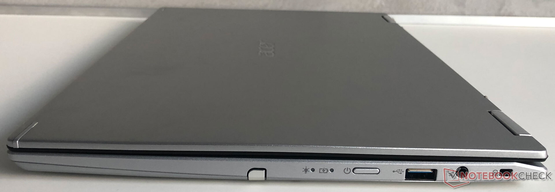 Die Sicherheitsausstattung des Acer Spin 3 A314 beschränkt sich lediglich auf einen Kensington Anschluss an der rechten Seite sowie einen Fingerabdrucksensor im Touchpad.