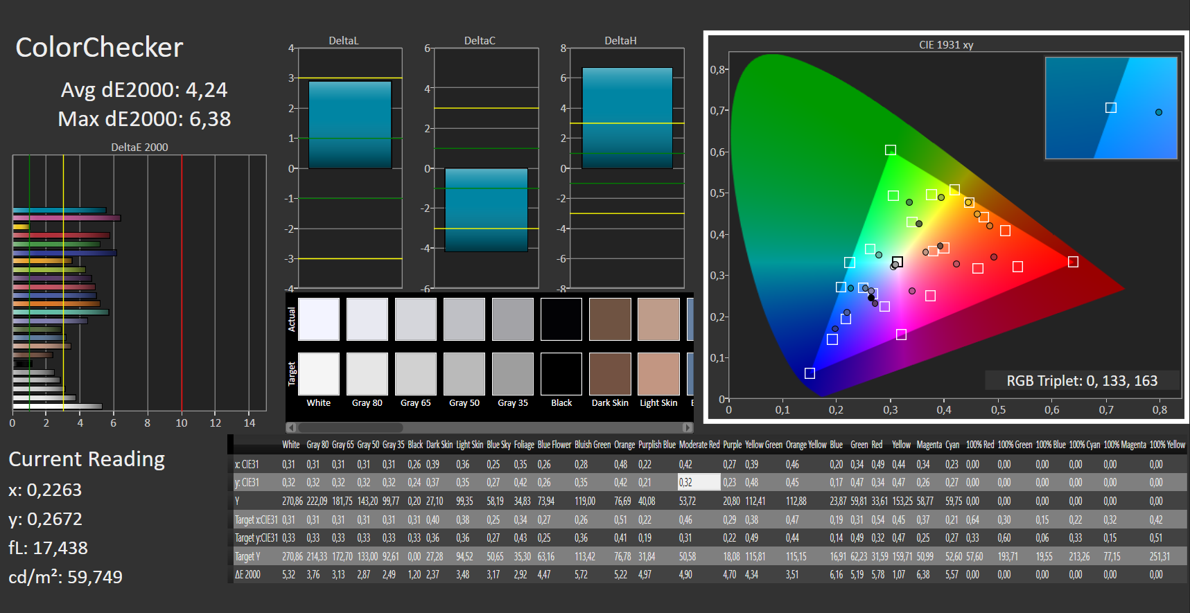 ΔE ColorChecker Calman: 4.24 | ∀{0.5-29.43 Ø4.78}