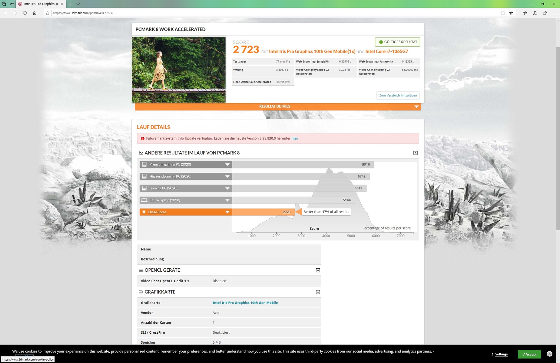 | Acer Spin 5 SP513-54N-79EY i7-1065G7, Iris Plus Graphics G7 (Ice Lake 64 EU), Samsung PM991 MZVLQ1T0HALB, IPS, 2256x1504, 13.5" | Acer Spin 5 SP513-52N-54SF i5-8250U, UHD Graphics 620, Micron 1100 MTFDDAV256TBN, IPS, 1920x1080, 13.3" | Dell XPS 13 7390 2-in-1 Core i7 i7-1065G7, Iris Plus Graphics G7 (Ice Lake 64 EU), Toshiba BG4 KBG40ZPZ512G, IPS, 1920x1200, 13.4" | HP Spectre x360 13-aw0013dx i7-1065G7, Iris Plus Graphics G7 (Ice Lake 64 EU), Intel Optane Memory H10 with Solid State Storage 32GB + 512GB HBRPEKNX0202A(L/H), IPS, 1920x1080, 13.3" | HP Envy x360 13-ay0010nr R5 4500U, Vega 6, Toshiba KBG30ZMV256G, IPS, 1920x1080, 13.3" | Samsung Galaxy Book Flex 13.3 i5-1035G4, Iris Plus Graphics G4 (Ice Lake 48 EU), Samsung SSD PM981a MZVLB256HBHQ, IPS, 1920x1080, 13.3" | Durchschnittliche Intel Iris Plus Graphics G7 (Ice Lake 64 EU) | Durchschnitt der Klasse Convertible | |