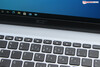 Die ebenen, glatten Tasten der beleuchteten Chiclet-Tastatur verfügen über einen kurzen Hub und einen klaren Druckpunkt. Der Tastenwiderstand geht in Ordnung. Während des Tippens gibt die Tastatur im oberen Bereich leicht nach. Als störend hat es sich nicht erwiesen. Die einstufige Tastenbeleuchtung wird mittels einer Funktionstaste gesteuert. Alles in allem liefert Acer hier eine alltagstaugliche Tastatur.
