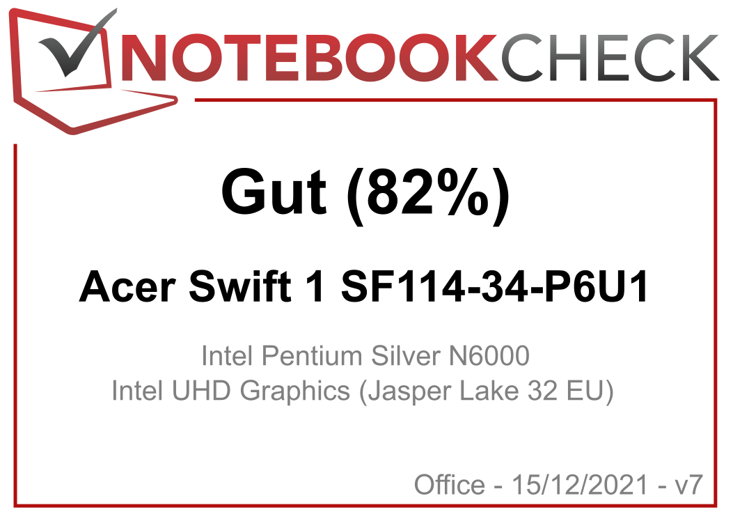 Das Acer Swift 1 SF114-34-P6U1 ist in der getesteten Ausstattung (Pentium Silver N6000, 4 GB RAM, 128 GB eMMC) zu einem Preis von 279 Euro bei Notebooksbilliger.de zu bekommen.